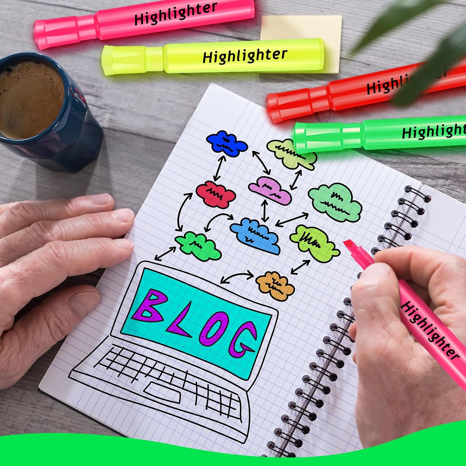 - Thoughtful Design Details: the highlighter come with a quality chisel tip, providing wide highlighting and thin underlining, which you can create thick and thin lines; And the fitting cap protects the nib when not in use