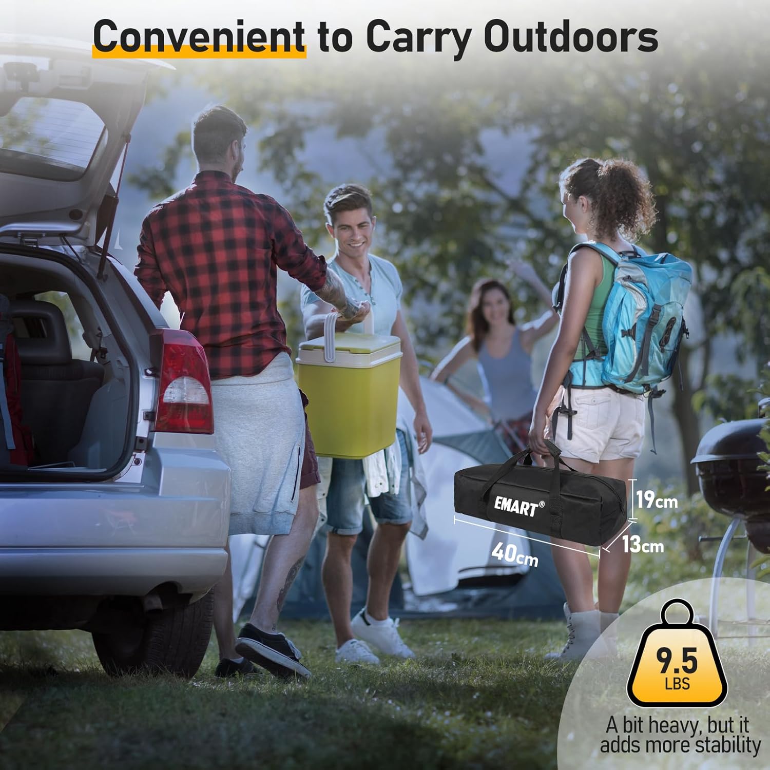 - 【Patent Flat Base -4.8LBS】Outdoor projector screen stand features 4.8lbs weight bases(300% heavier than the normal tripod base), with a large ground contact area for stability, and includes 13lbs water bags for added weight, ensuring your portable projector screen stays steadfast and secure.