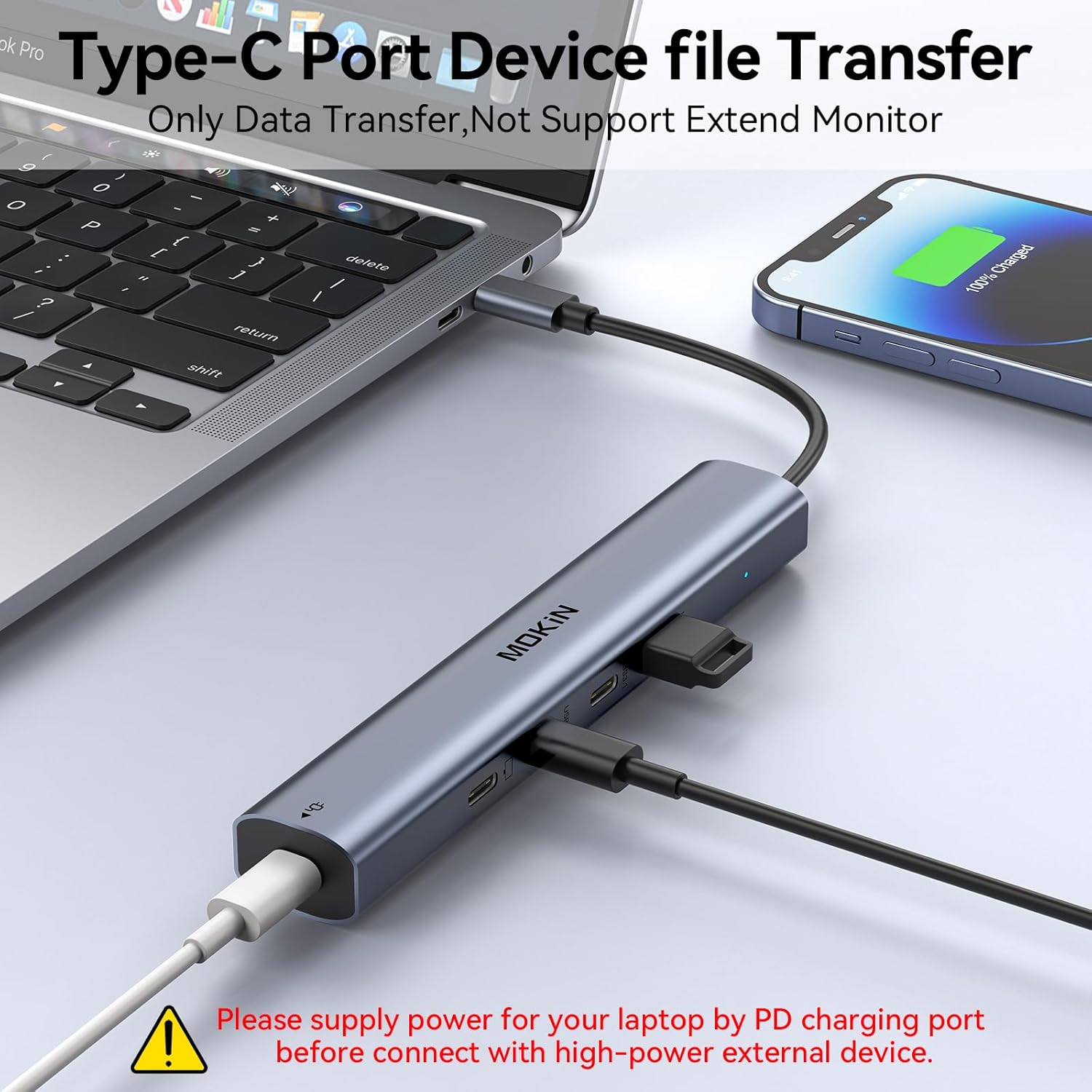 - 【4K@60Hz Video Output】:Enjoy stunning 4K@60Hz video output with USB-C Display Ports. MOKiN USB C Splitter supports 10Gbps data transfer and 4.5W charging for your connected devices. Note: Video output is only compatible with laptops that have fully functional USB-C, Thunderbolt 3/4, or USB4 ports. Ensure your laptop supports these features for optimal performance