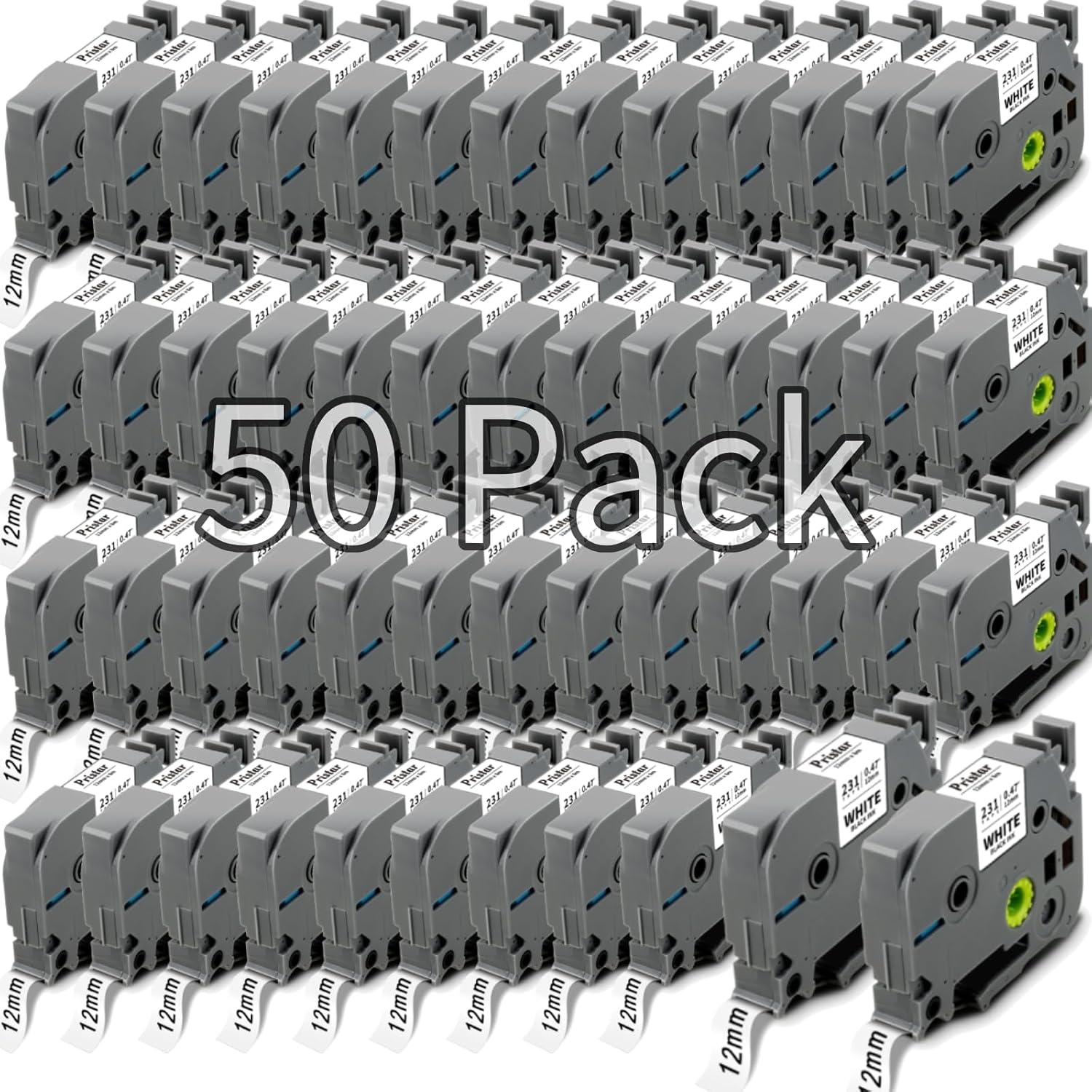 50x Replace for Brother 12mm 0.47 Laminated White TZ Tape, P Touch Label Tape Compatible with Brother Label Maker PTouch PTH210 PTD220 PTH110 PT-1280 PT-1880, Black on White, 1/2 Inch x 26.2 Feet