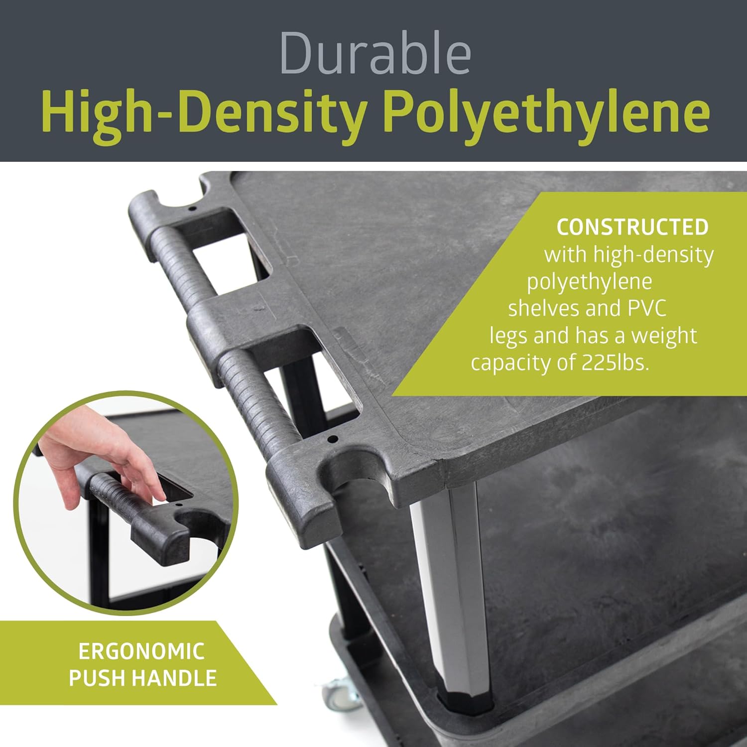 - DURABLE CONSTRUCTION: Made of heavy-duty, high-density polyethylene shelves and PVC legs with a maximum weight capacity of 225 lbs., ensuring lasting performance