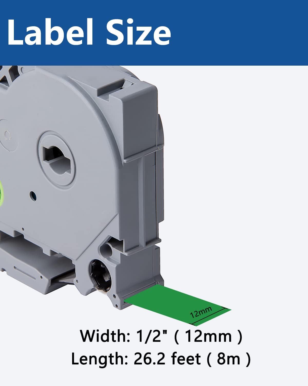 - Size : 0.47'' (1/2'') Width x 26.2' Length, which is 12mm x 8m. Package : 3 Pack. Color : Black on Green
