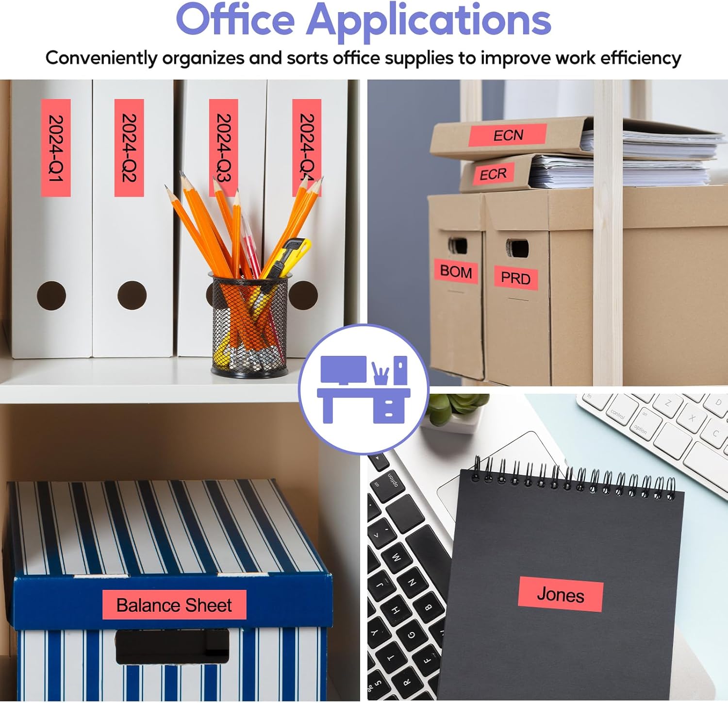 - NineLeaf Compatible for Brother P-touch MK431 M-K431 M431 M-K431S Non-Laminated Label Tape, Color:Black on Red, Length:8m(26.2ft), Width:12mm(1/2")