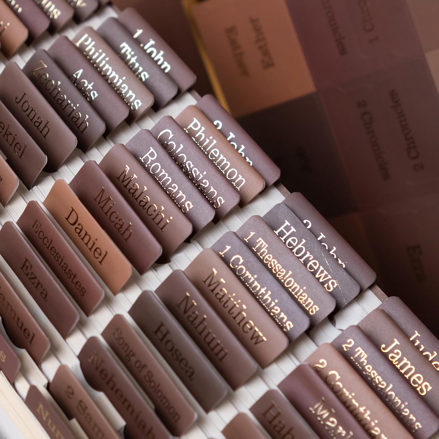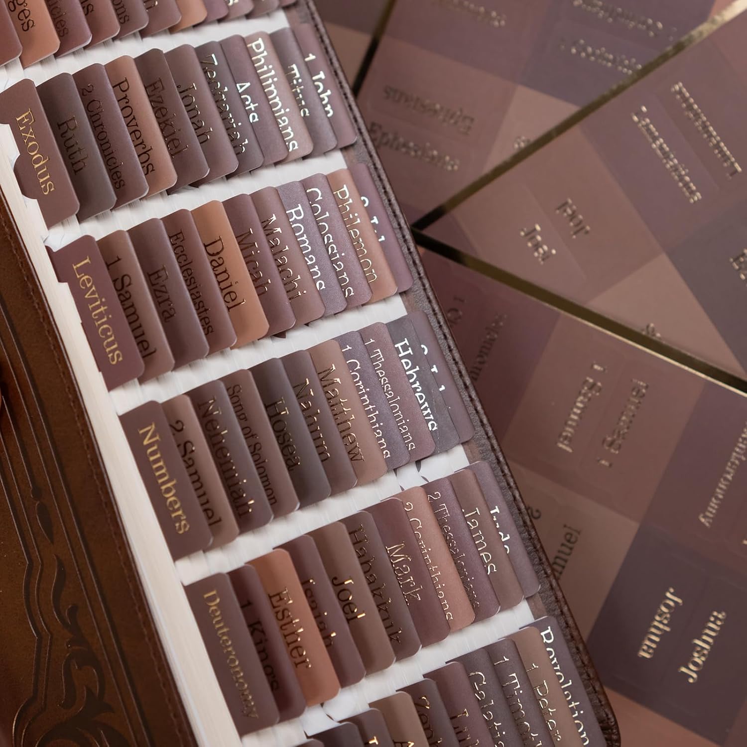 UPAFEXXI-Laminated Bible Tabs for Women and Men (Gold Foil Embossed Lettering) Reposition Large Print tabs, Easy to Read and Apply, 80 Bible Chapters Labels for Easy Navigation(Brown)