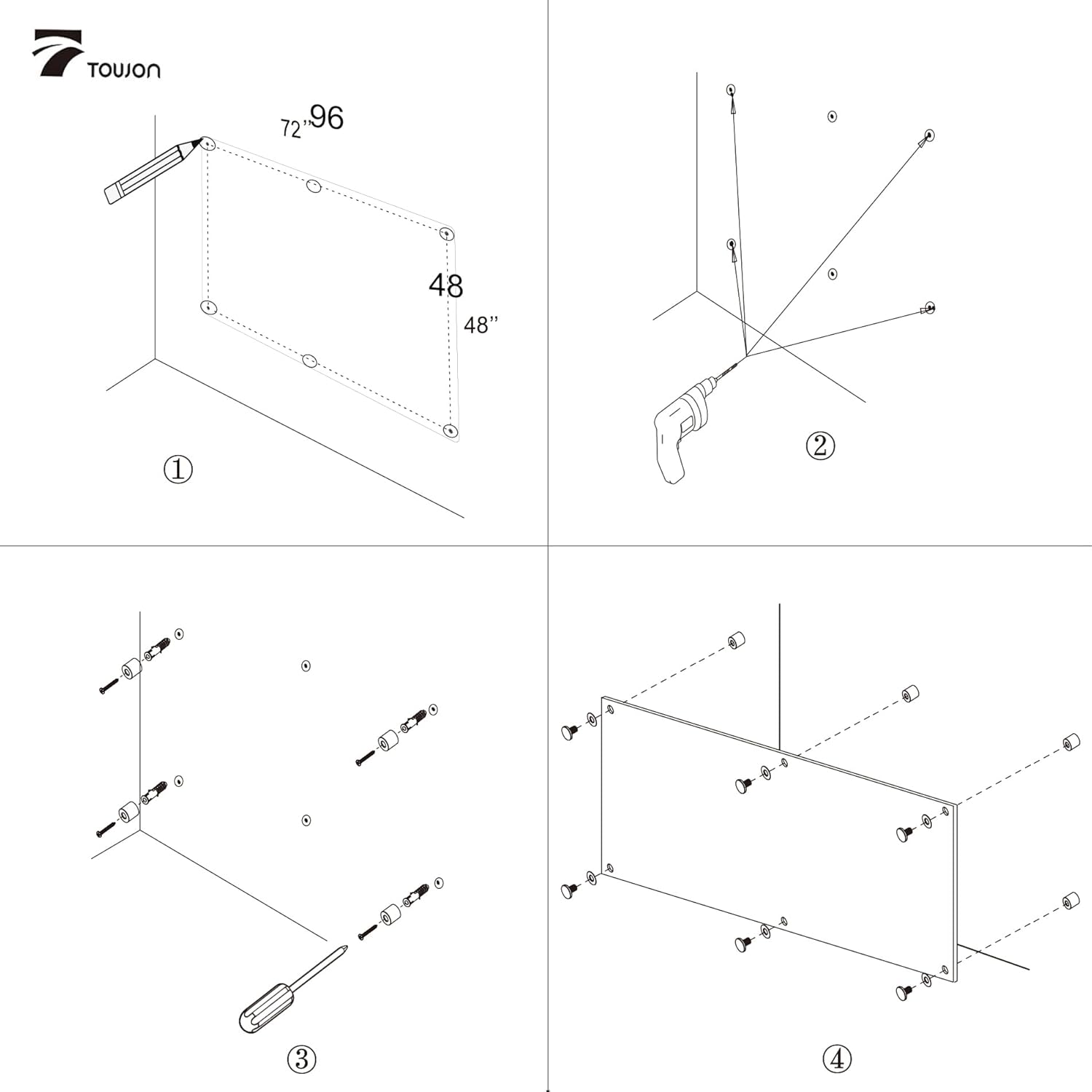 TOWON 6 x 4ft Glass Whiteboard Wall, Black Magnetic White Board Dry Erase 72 x 48 in, Big Glass Dry Erase Board with Multi-Color Markers, Strong Magnets, Pen Tray and Eraser, Frameless