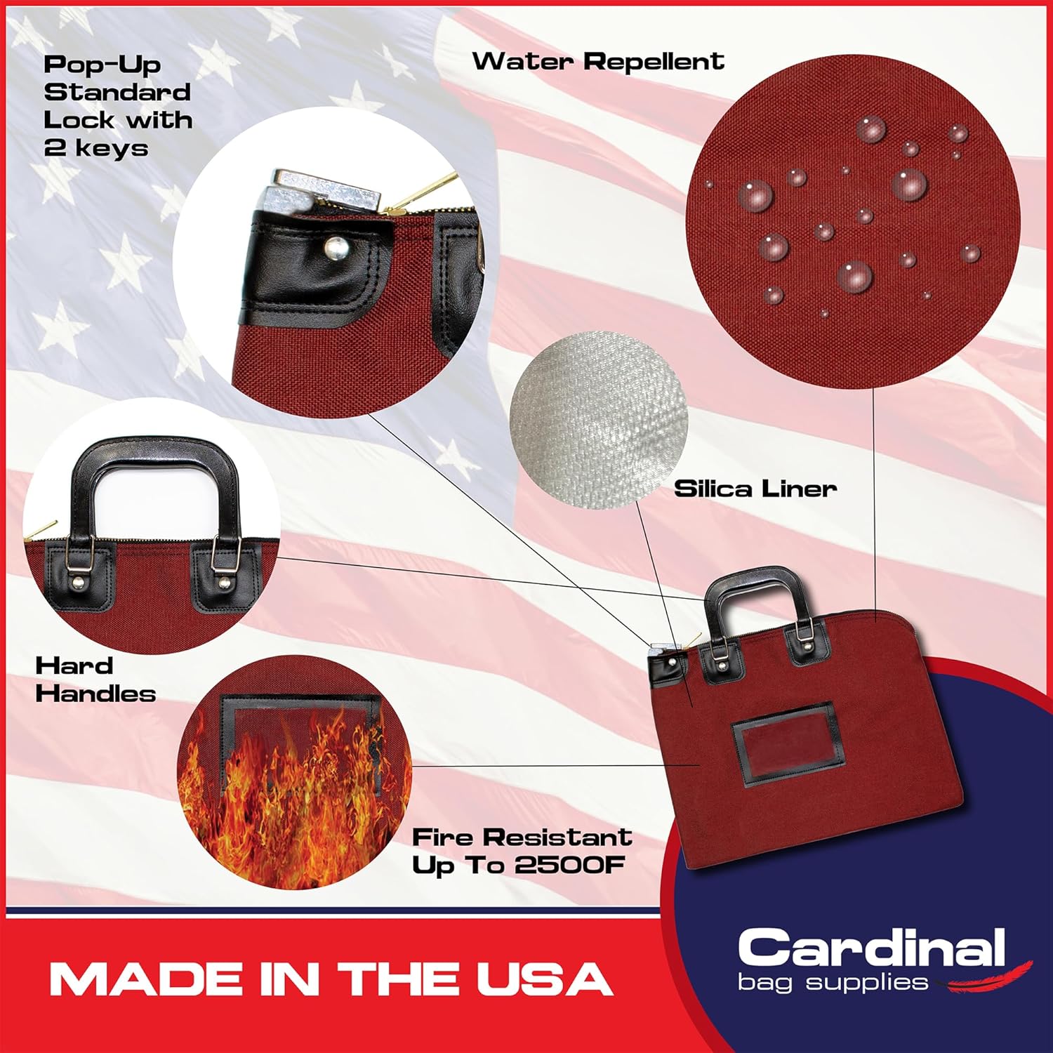 Fire Resistant Security Money Bag with Lock, Water Repellent, Safe Storage, Protects Important Valuables, 15 x 11 Inch (Burgundy)