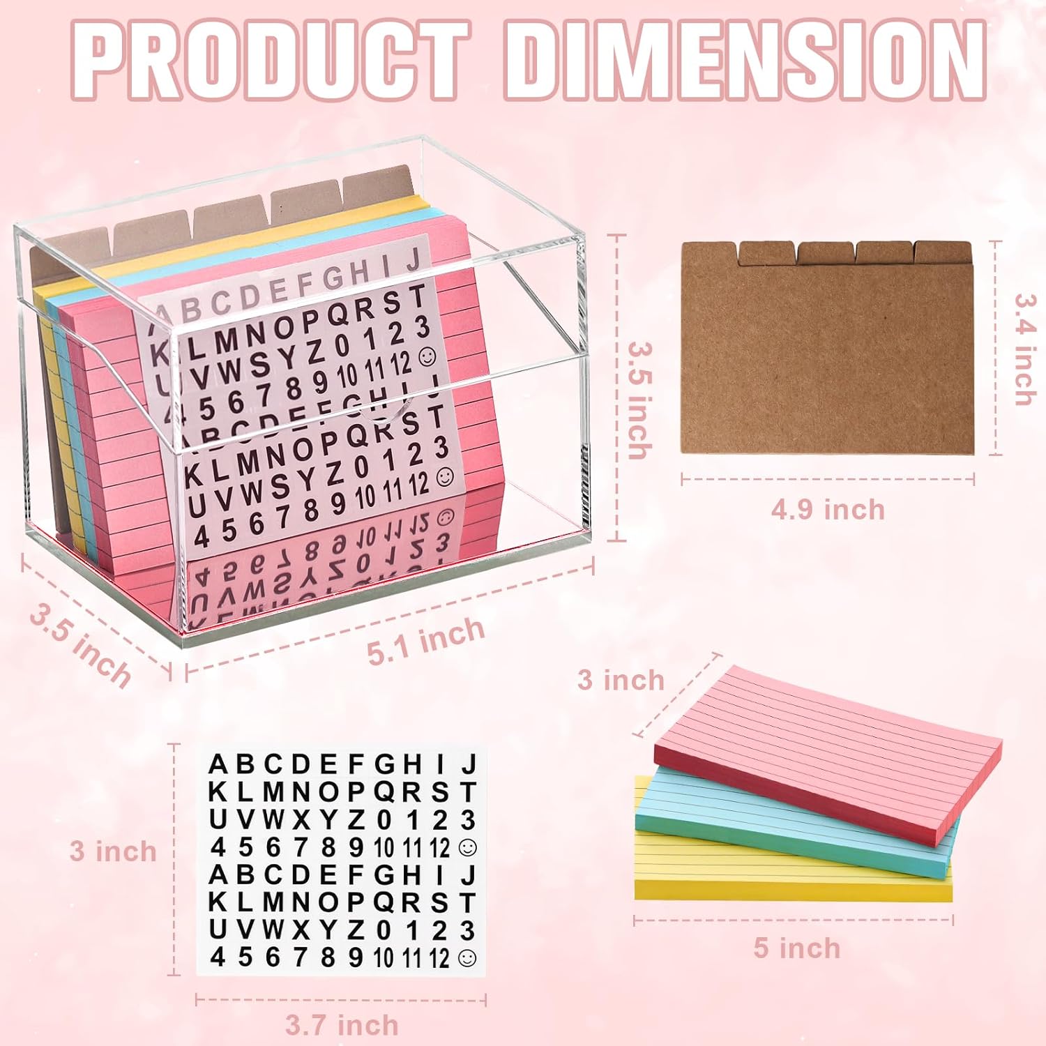 DLUGOPIS 3x5 Rose Gold Index Card Organizer Recipe Card Box Acrylic Flash Card Holder Index Card Box with Mirro Base 150 Ruled Lined Index Cards 30 Kraft Dividers Stickers For Holds 400 Note Cards