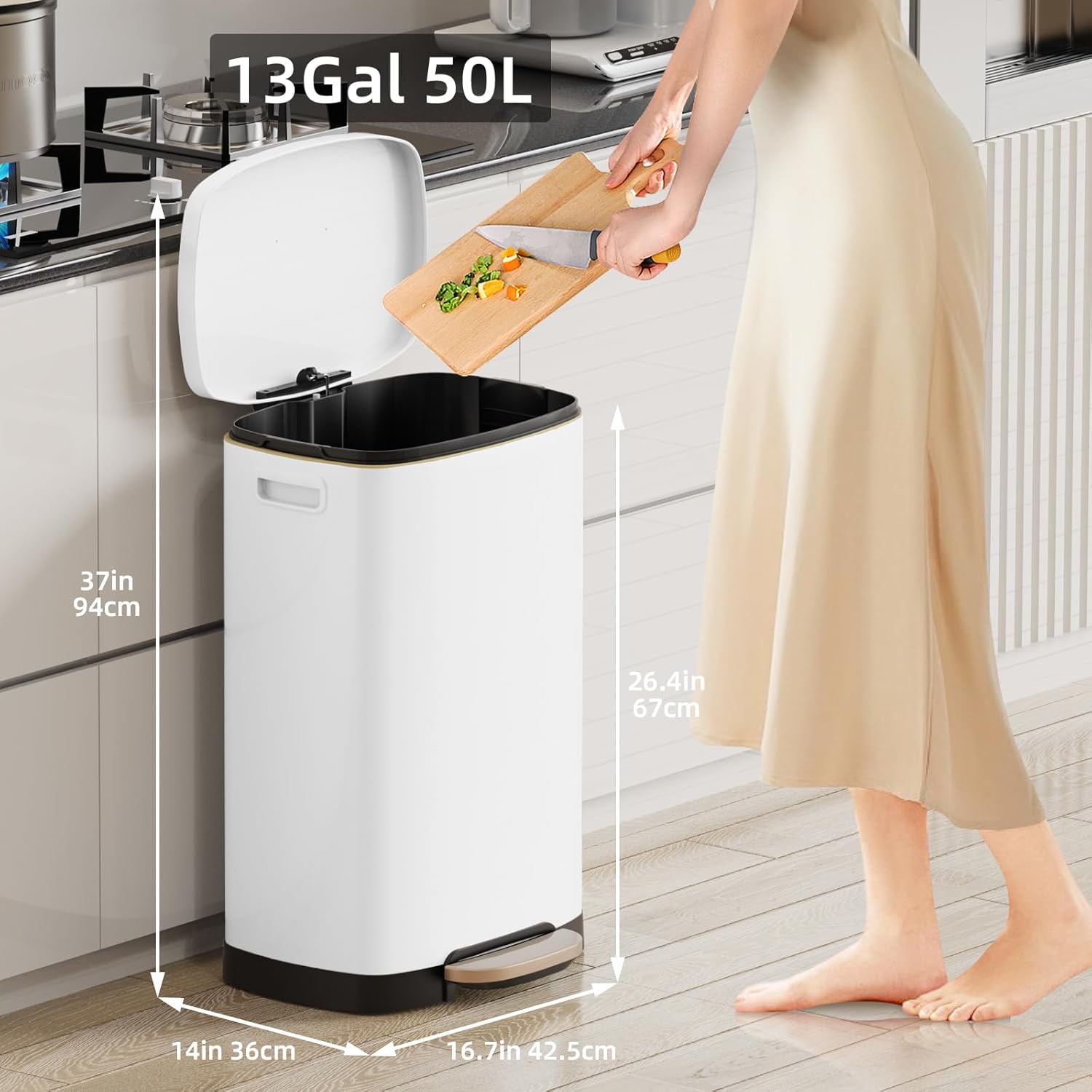 - 🚮 Large Capacity & Odor Lock Technology: 50L (13 Gallon) extra-large capacity reduces frequent trash runs, perfect for busy kitchens. Sealed lid with odor-blocking design traps smells, keeping your space fresh and clean.