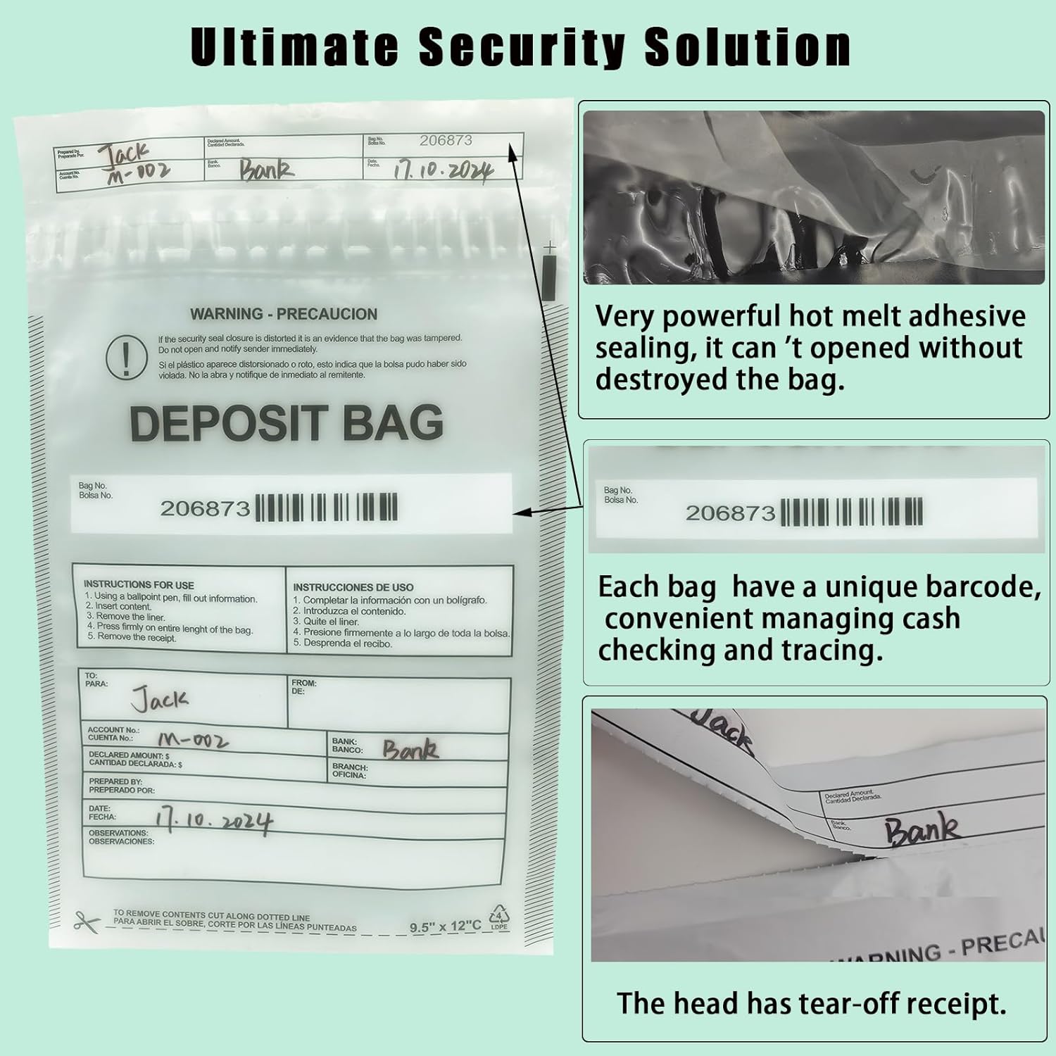 - Ultimate Security Deposit Bags:We tamper-evident deposit bags use the latest very powerful hot melt adhesive sealing technology,it can 't opened without destroyed the bag after closing the bag. Great for bank deposits, currency, coins, checks, receipts and cash management transportation