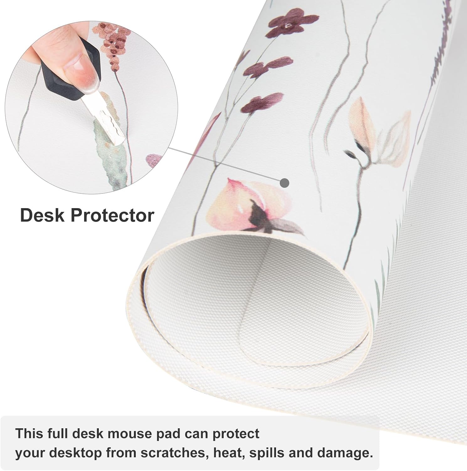 - Waterproof & Easy to Clean Desk Cover - Made of water-resistant and durable PU leather, this cute mousepad help prevent your desk from damages such as scratches, stains, spills and heat. Easy to clean, just wipe with a wet cloth or tissue.