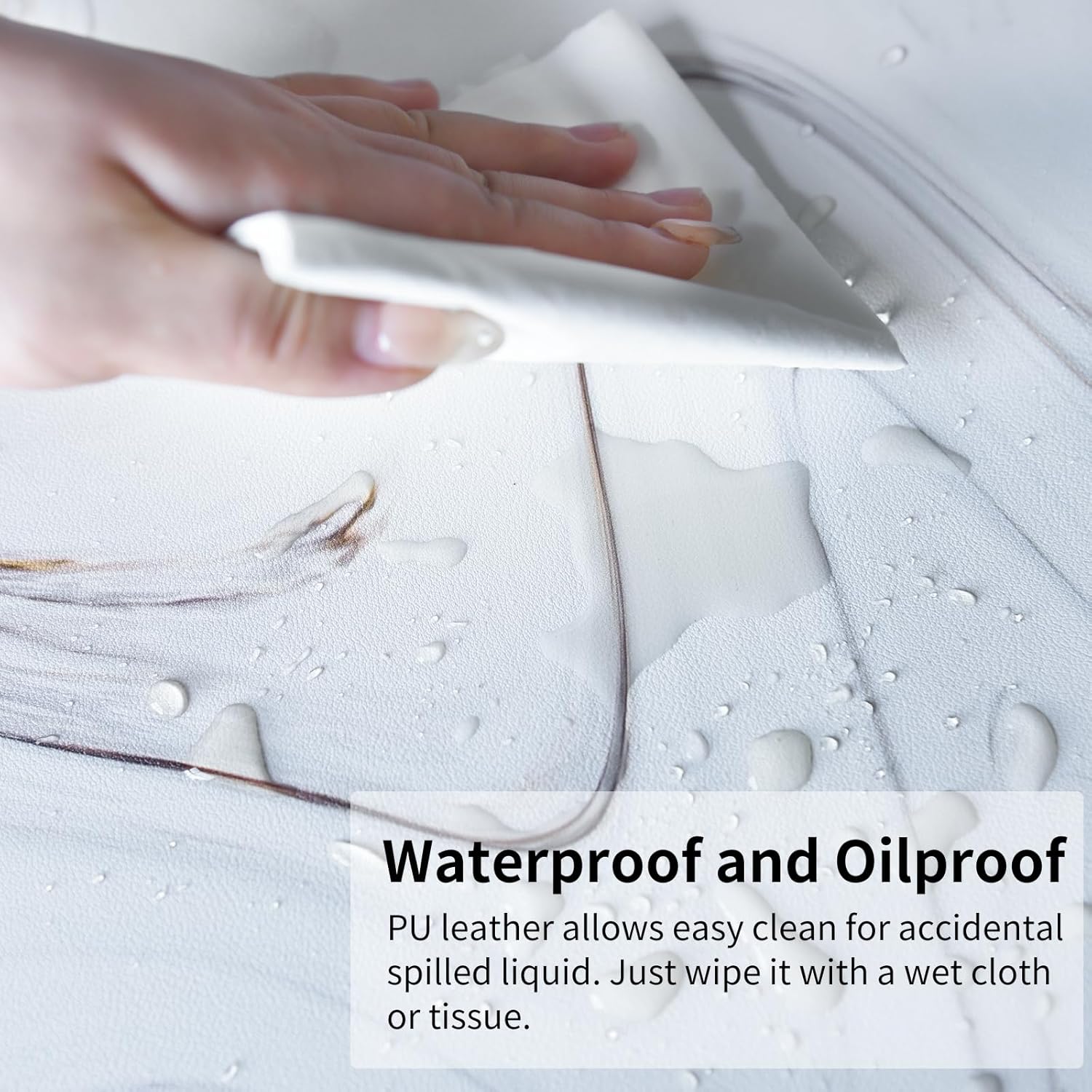 - Waterproof & Easy to Clean - Made of water-resistant and durable PU leather, this mousepad help prevent your desk from damages such as scratches, stains, spills and heat. Easy to clean, just wipe with a wet cloth or tissue.