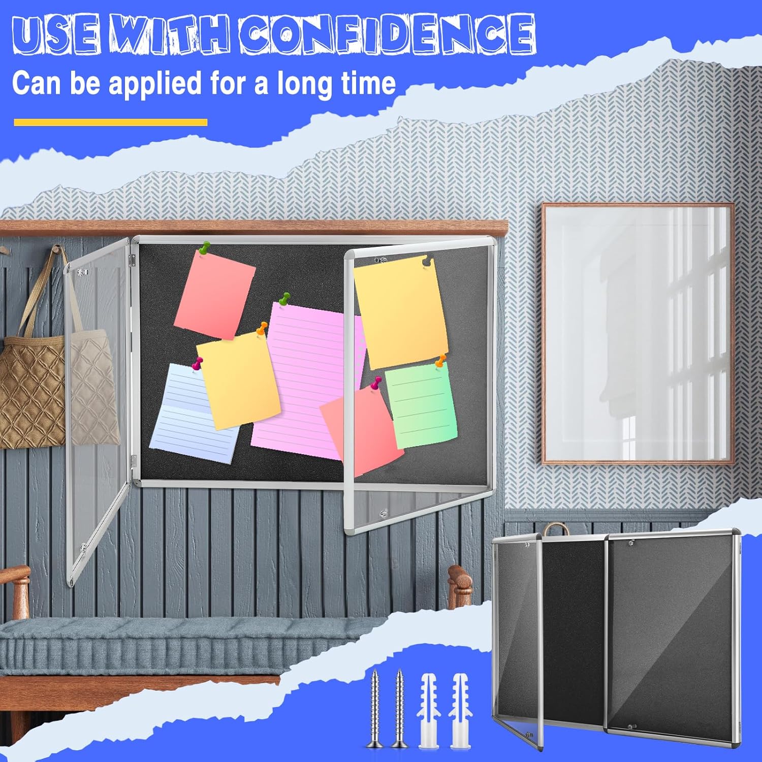 - Easy Installation: the enclosed bulletin board is easy to install on the wall with fixing and instruction, and our package comes with mounting hardware and screws, which is more convenient for you to install and ensure the locking bulletin board is stably installed on the wall