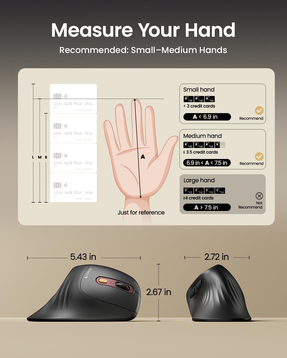 - Notes: We recommend that small to medium hands use our ergonomic vertical mouse. Please measure the size before ordering for a better fit and more comfort