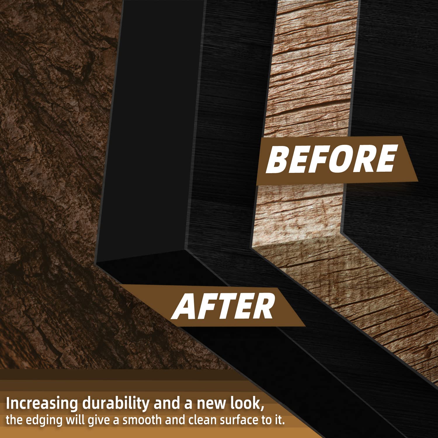 - √【UPGRADE DESIGN】- The size of Edge Banding is 3 inch x 25ft, and the thickness is 0.6mm, It's suitable for your daily needs. Edge Banding is a strip of wood veneer with heat melt adhesive pre-applied to the back. You simply hold the edge banding in place, then run over it with a heated iron. After cooling, please press it with your hand and trim off the sides with the Utility Knife, 0.6mm thickness can let you easy to do.