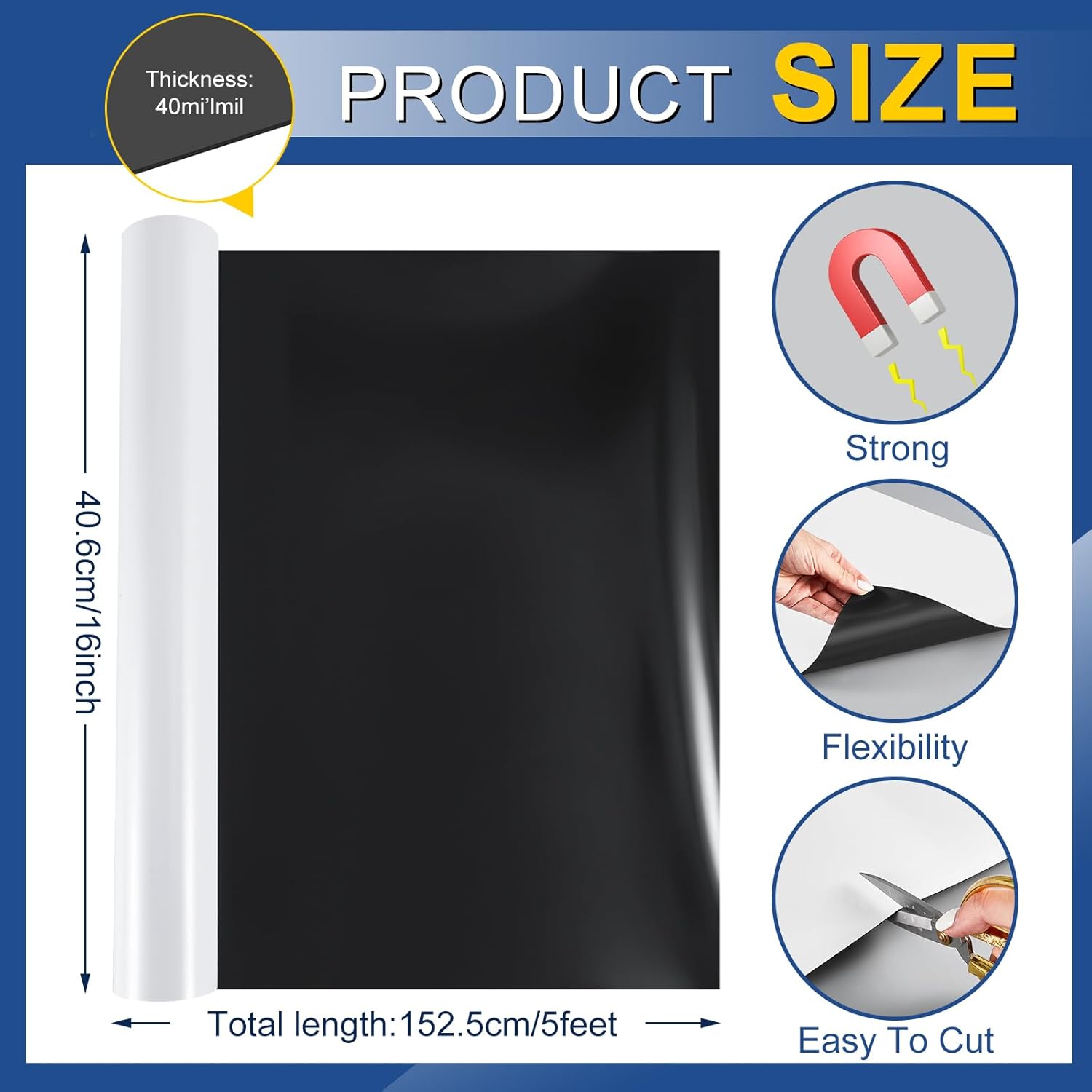 - What You Will Receive: you will get 1 roll of magnetic vinyl, measuring about 1.5 meters/ 5 ft in length, 16 inches/ 40.6 cm in width, 40 mils in thickness, adequate length to satisfy your daily use and decoration demands, bringing convenience to your life