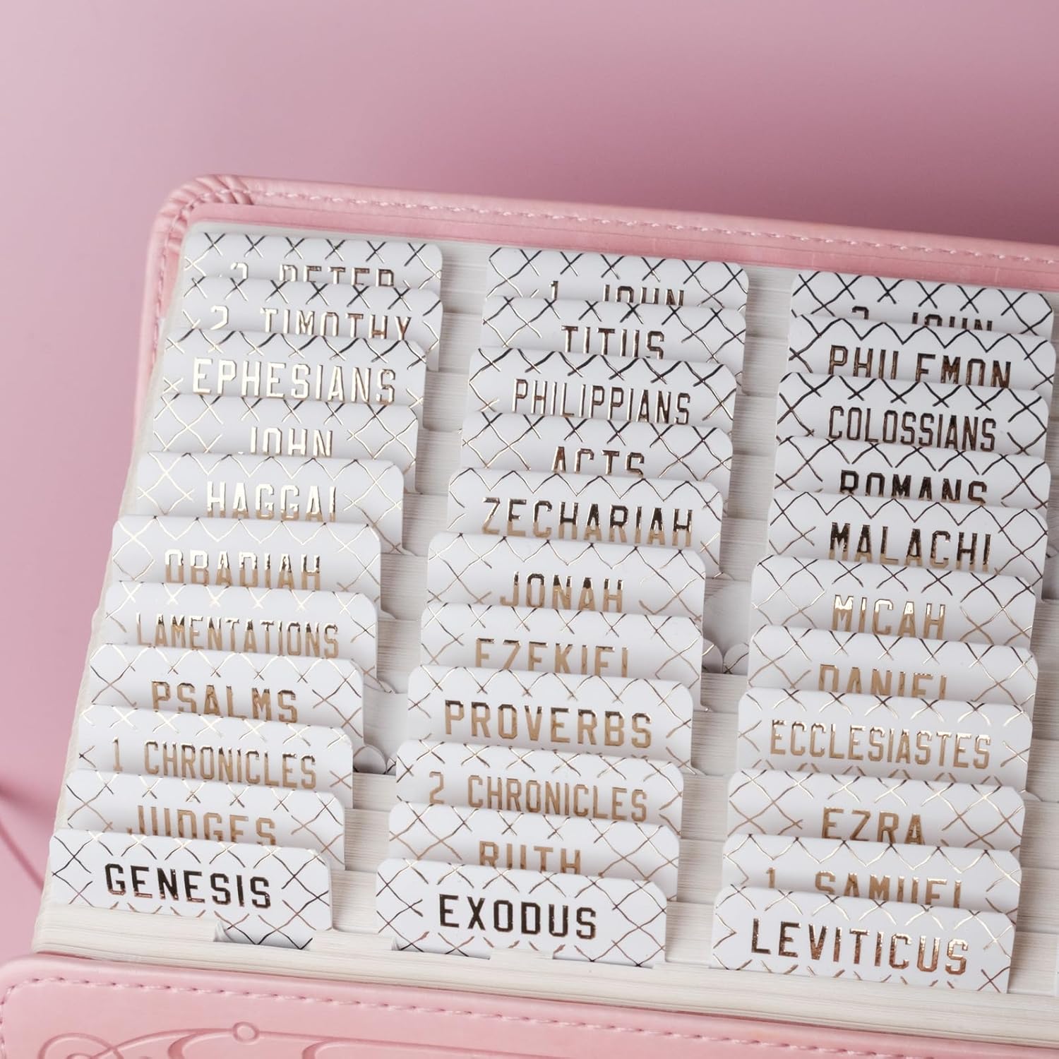 - Unique: Gold Foil Embossed Lettering.This is the ideal christian gi.ft. These unique Bible index tabs make a great gi.ft for your girlfriend, mum, kids, or anyone who loves beautiful things in life.