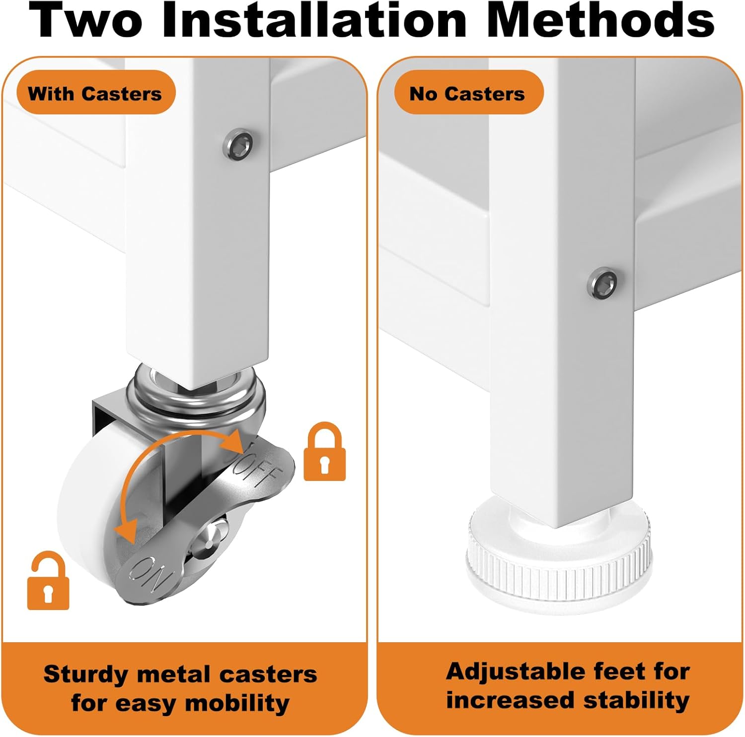 - Two Installation Options: The printer table can be used with or without wheels.Not only does it make it easy to move the printer around without having to manually lift it, but it also makes it easy to clean underneath the printer stand.