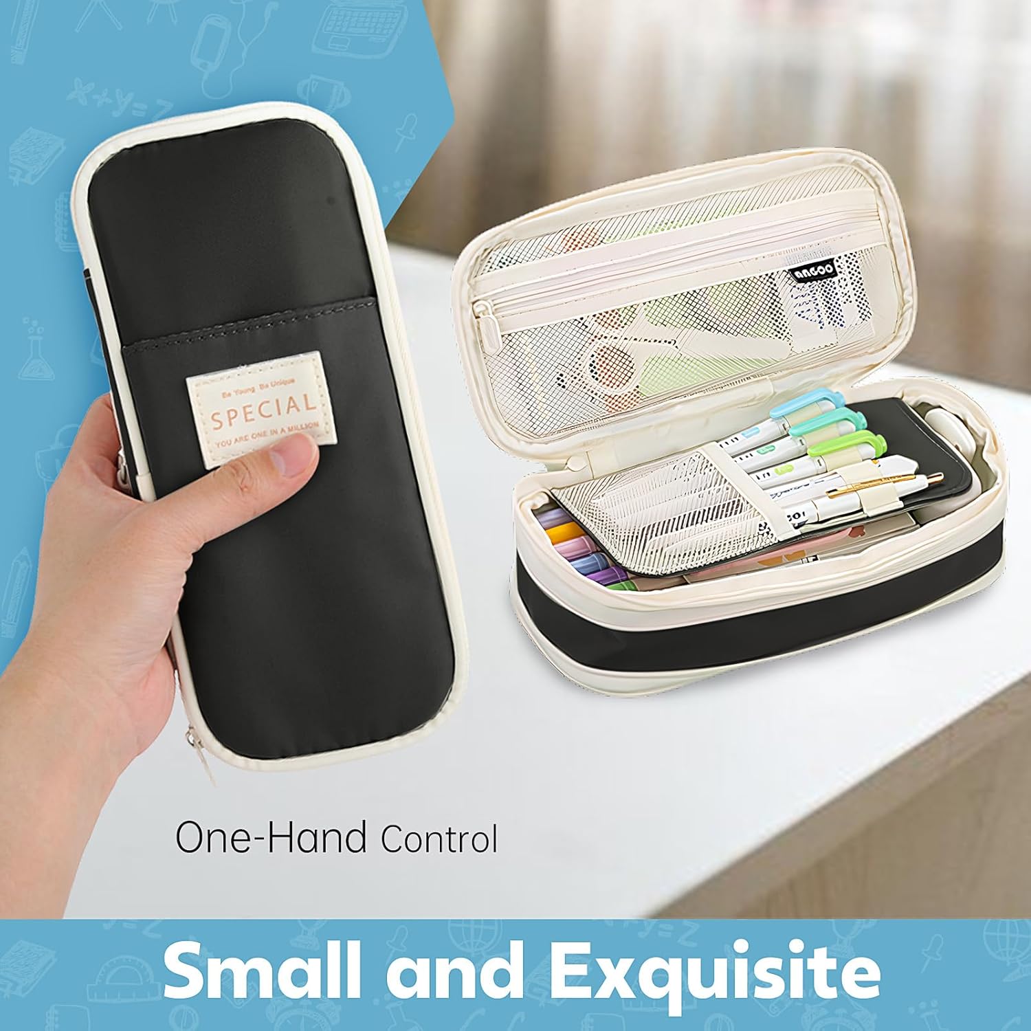Pencil Case, Large Capacity Aesthetic Pencil Cases with Durable Zipper, Big Stationery Pencil Pouch for Women & Men, Adults Portable Storage Organizer Bag for College, office, Travel (Black)