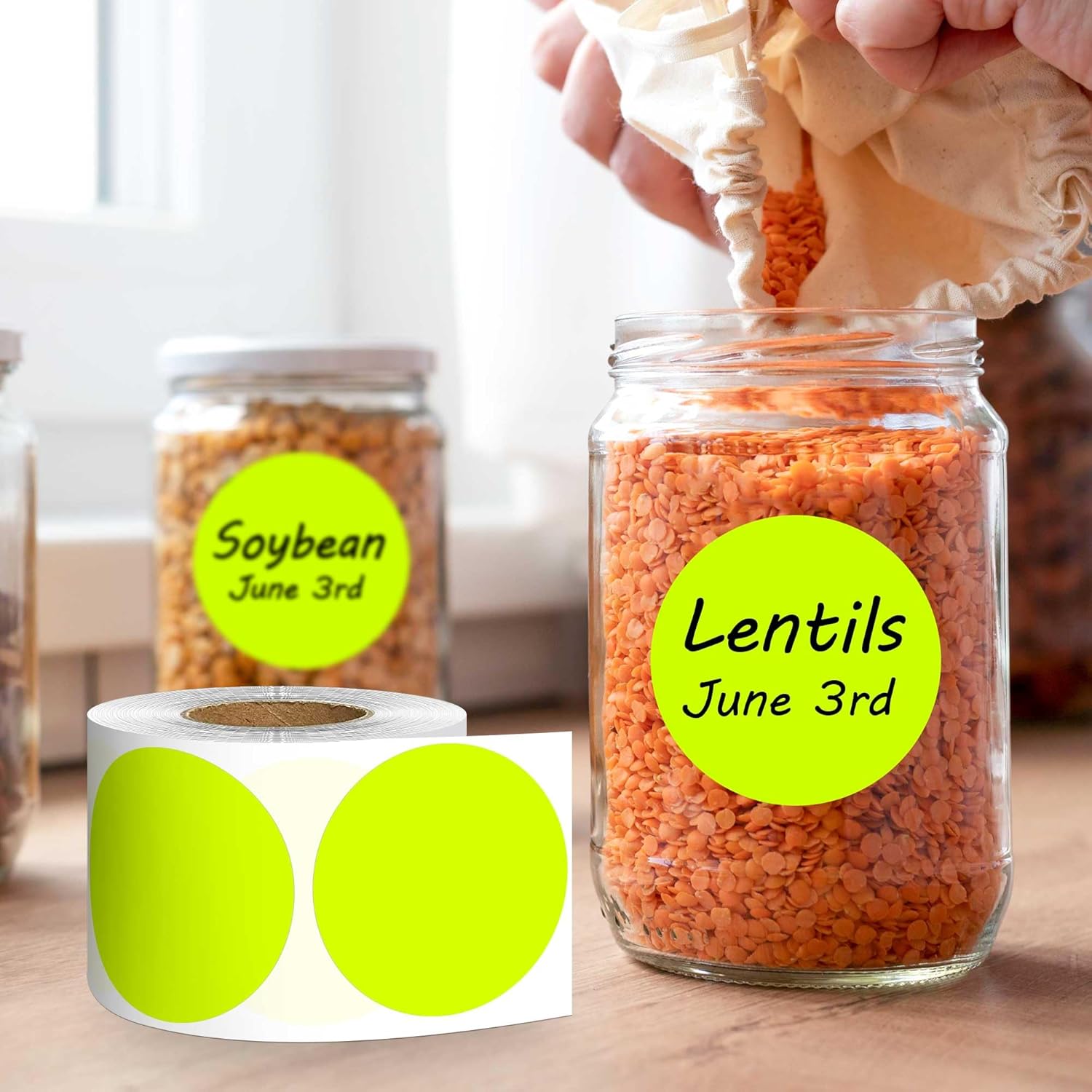 PARLAIM 2 inch Round Color-Code Dot Sticker Labels, 4 Rolls 2000 Adhesive Label Pack in Dispenser Box, Fluorescent Yellow