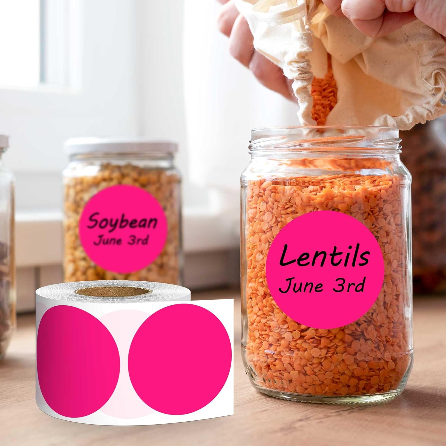 PARLAIM 2 inch Round Color-Code Dot Sticker Labels, 4 Rolls 2000 Adhesive Label Pack in Dispenser Box, Fluorescent Pink