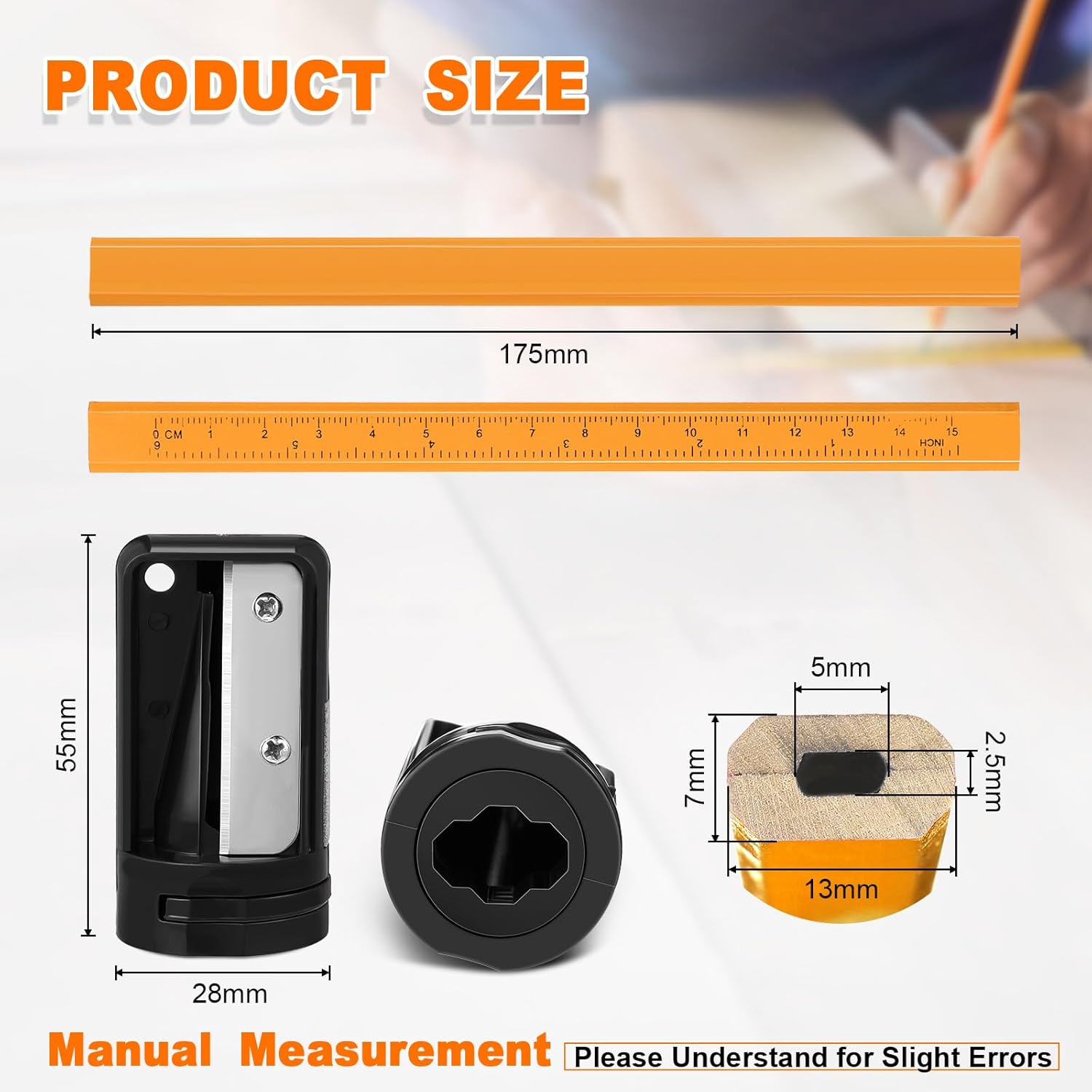 - The Packaging Includes: you will get 200 pieces of carpenter pencils with printed ruler on one side, and 2 pieces of carpenter pencil sharpeners to point the pencil, which can help you easily mark on the wood