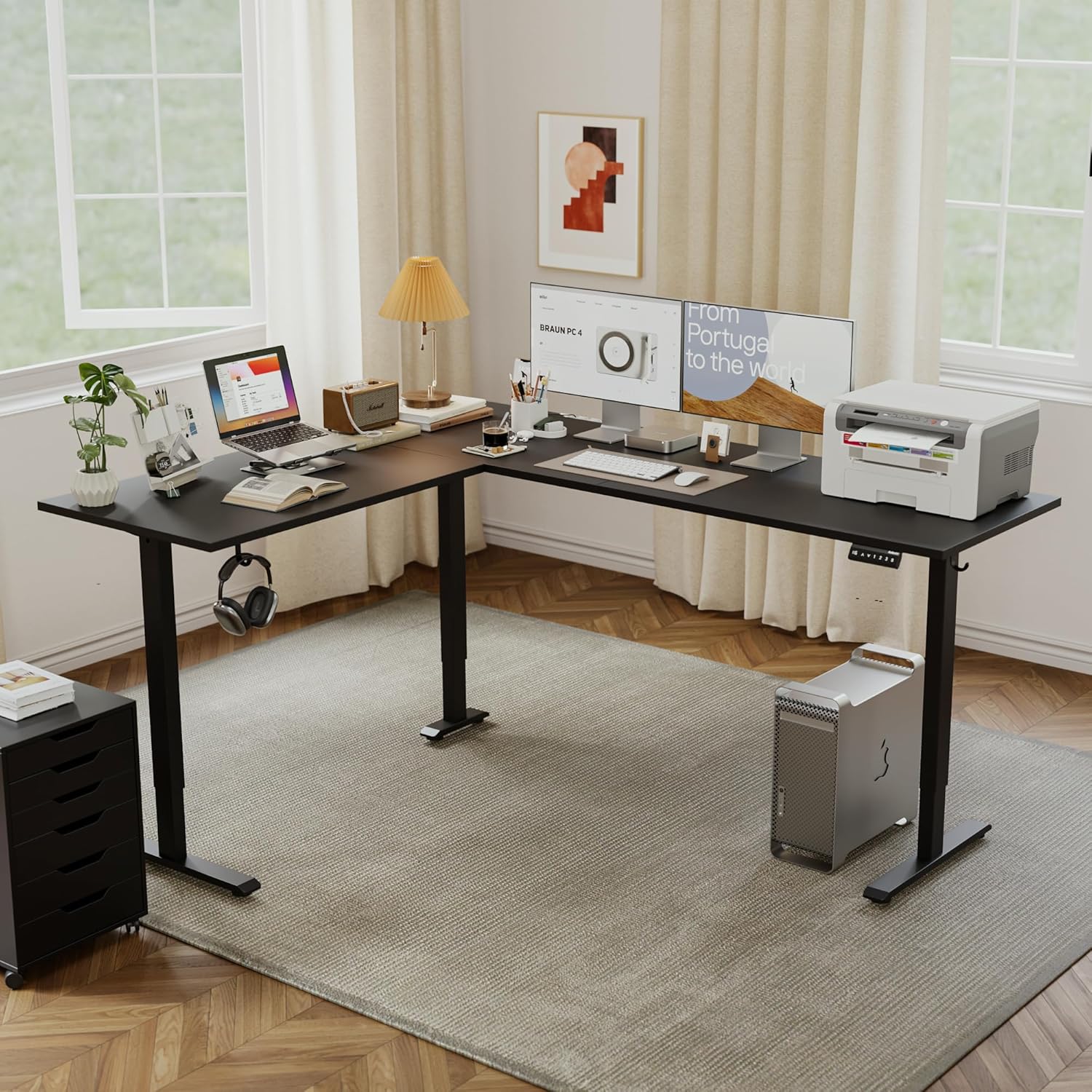Agilestic L-Shaped Standing Desk Adjustable Height, Electric Corner Standing Desk, Sit Stand Up Desk, 75x61 inch Sit Stand Computer Table, Black