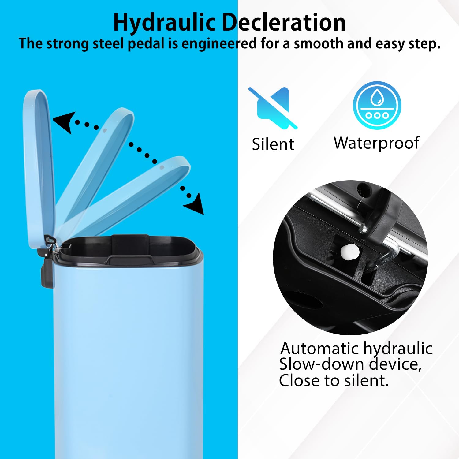 PayLessHere Stainless Steel Trash Can with Lid - Removable Inner Bucket, Foot Pedal Soft Close for Office, Home, Kitchen Garbage Bin (Blue, 13 G)