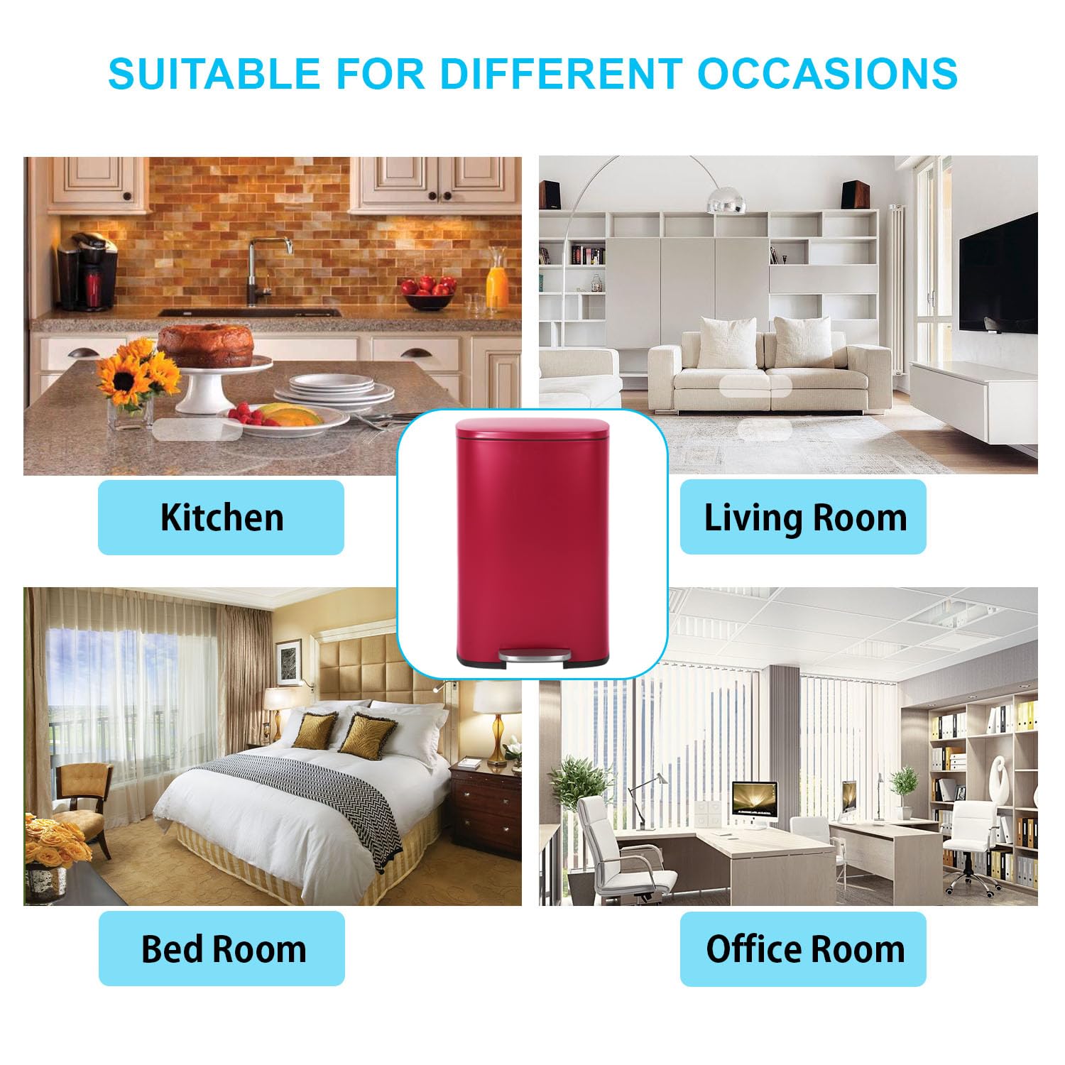 - 13 Gallon Ultra-large Capacity: 13 gallons can absolutely meet your daily use, in the kitchen table next to a kitchen trash can, you will be more convenient to deal with kitchen waste. The regular 13-gallon garbage bag in the supermarket can be used in our stainless steel trash can, and it's kind of you to use a bigger bag. The lid of the garbage can is removable, it’s convenient for you to put in and take out the garbage bag.step trash can kitchen trash can bedroom trash can