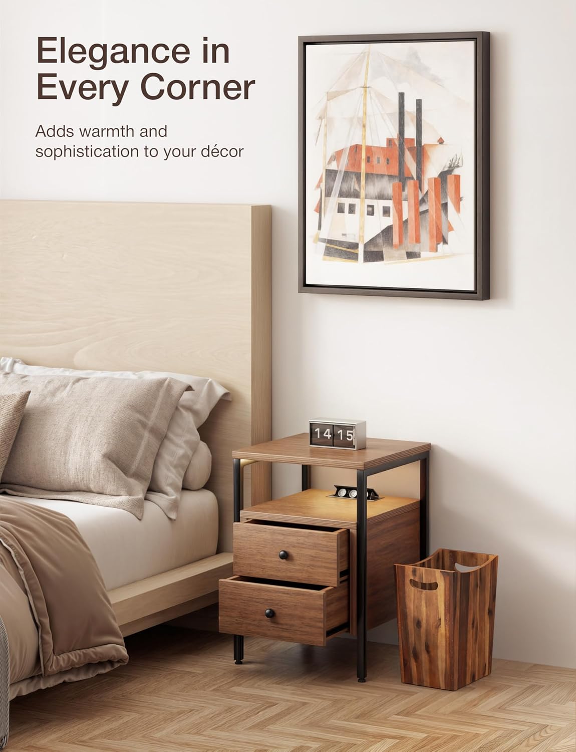 - Walnut Color Finish: Features a rich walnut finish that enhances the natural feature of the wood, adding warmth to your space. Variations in wood patterns, knots are inherent features that add to its natural beauty. The actual product may have a slightly darker tone than shown in the images.