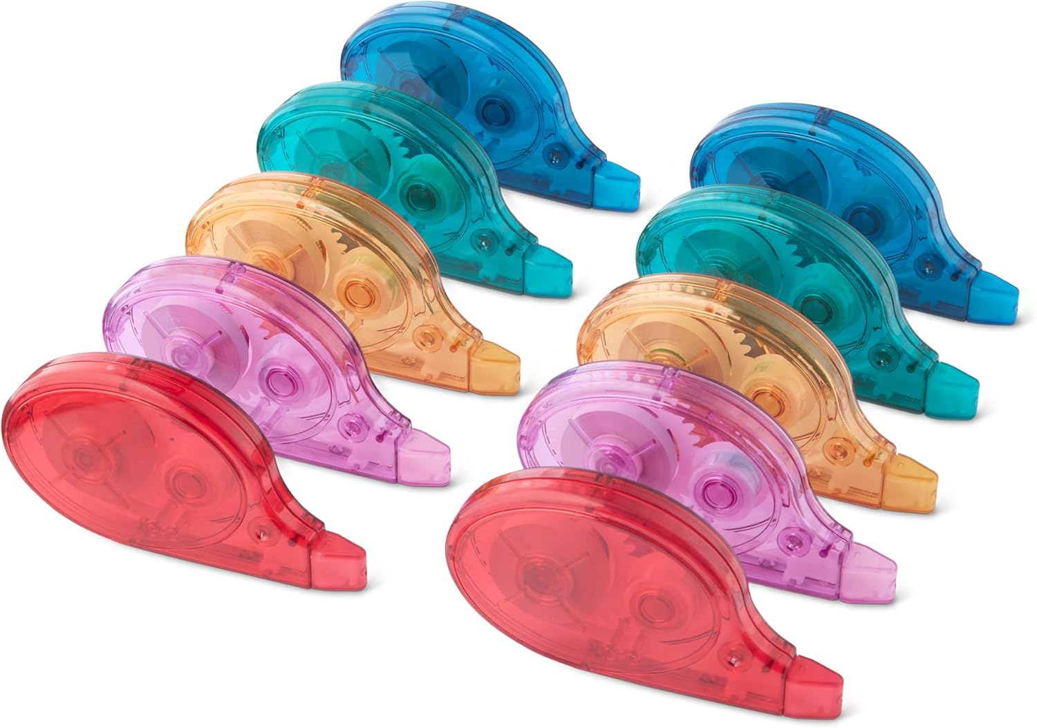 Amazon Basics White-Out Correction Tape with Dispenser, 39.3ft, 10-Pack, Fast, Clean and Easy to Use Tear-Resistant Tape Office or School Supplies, Green, Orange, Purple, Red, Blue