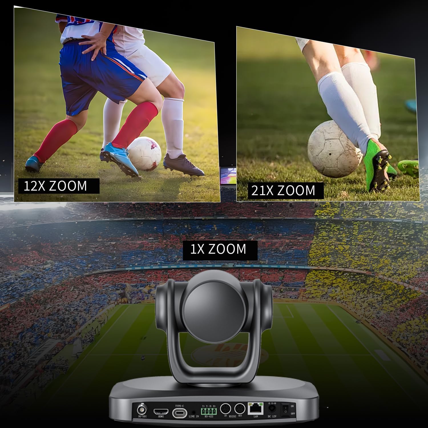 - 【21x Optical Zoom 4K PTZ Camera】Delivers true optical zoom, maintaining high-definition image quality and capturing fine details even when focusing on targets up to 25 meters away. Effortlessly handle wide-angle shots of church sanctuaries, school auditoriums, or conference halls, as well as tight close-ups of podiums, operating rooms, or wedding ceremonies. An ideal solution for live broadcasting, broadcasting, medical, education, and religious events.
