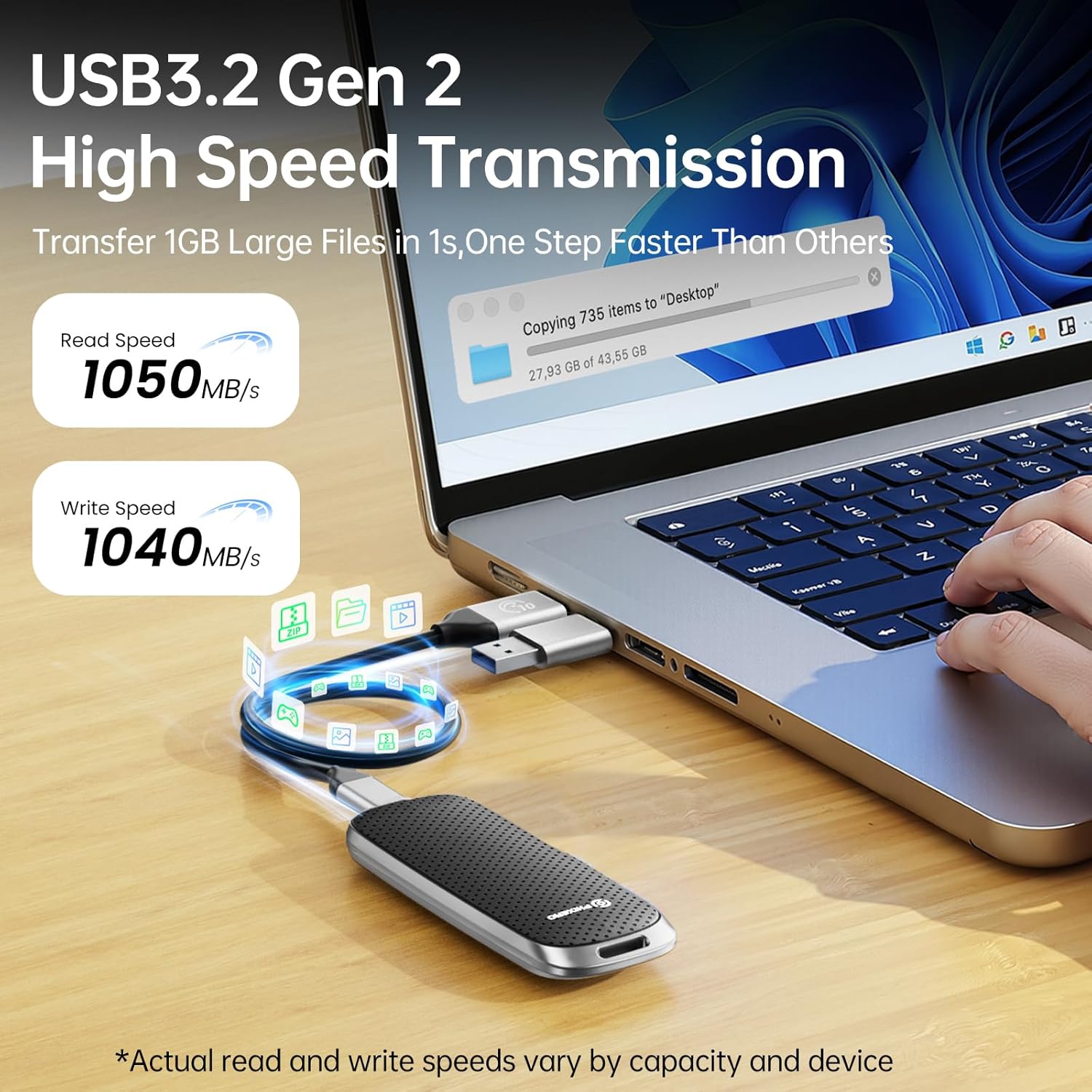 - ULTRAFAST PERFORMANCE, INSTANT TRANSFERS: Equipped with USB 3.2 Gen2 interface, this P10PRO External NVMe SSD 2TB supports up to 10Gbps high speed data transmission, achieving real world read speeds up to 1050MB/s and write speeds up to 1040MB/s. Transfer 1GB of data in just one second, ideal for 4K video editing, game libraries and large business files, dramatically improving work efficiency.