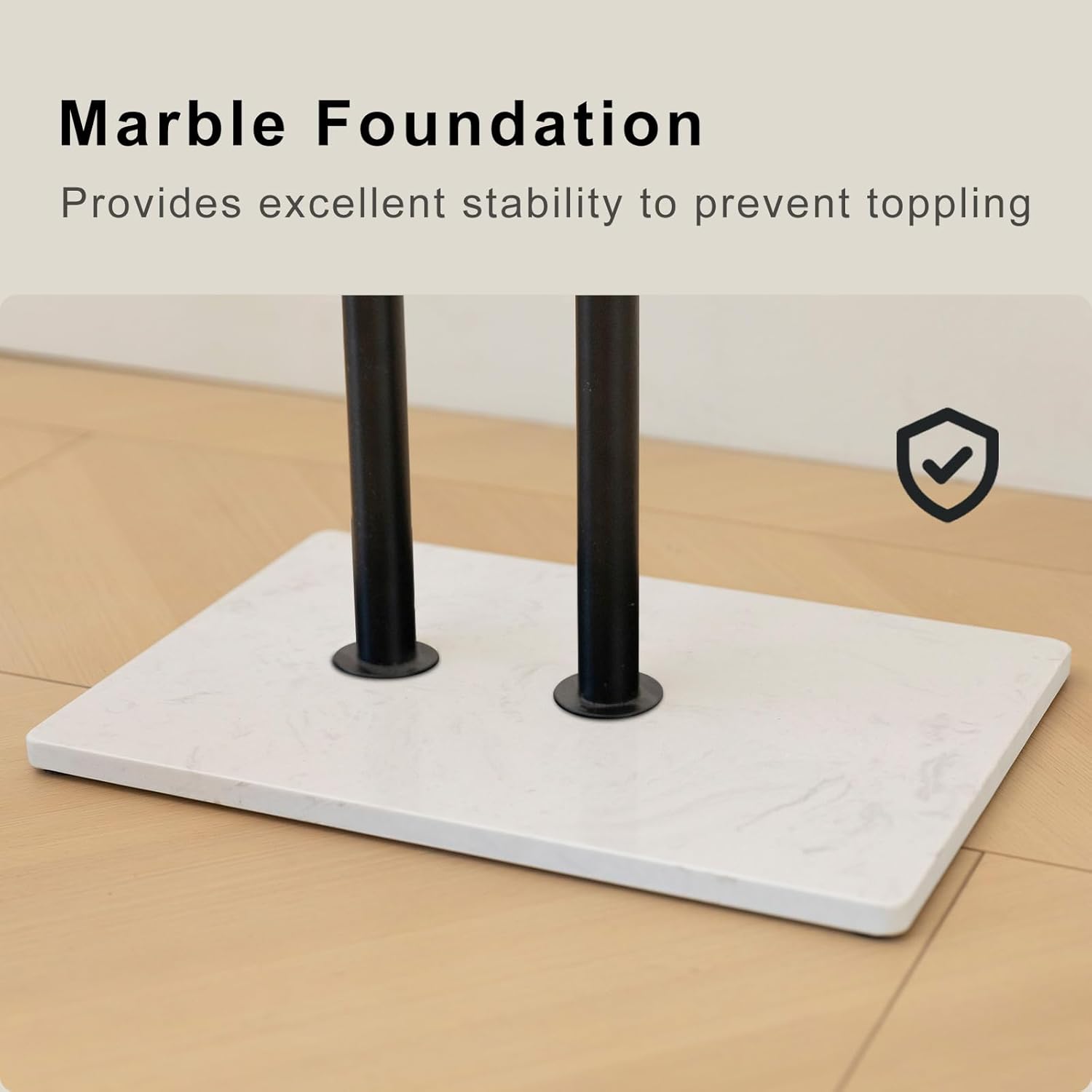 - Metal Rods & Marble Base: Constructed from high-quality metal, this coat tree offers reliable support for heavy items, ensuring stability without bending or tipping. It also features a sturdy marble base, 1.4 cm thick and weighing 4 kg, providing exceptional stability and solid support for the entire rack