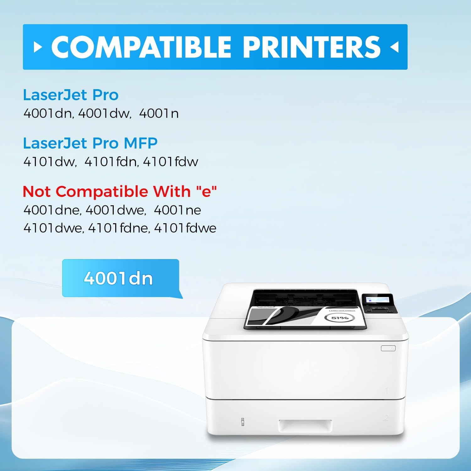 - Compatible with HP LaserJet Pro 4001dn,4001dw,4001n; MFP 4101dw,4101fdn,4101fdw Printer