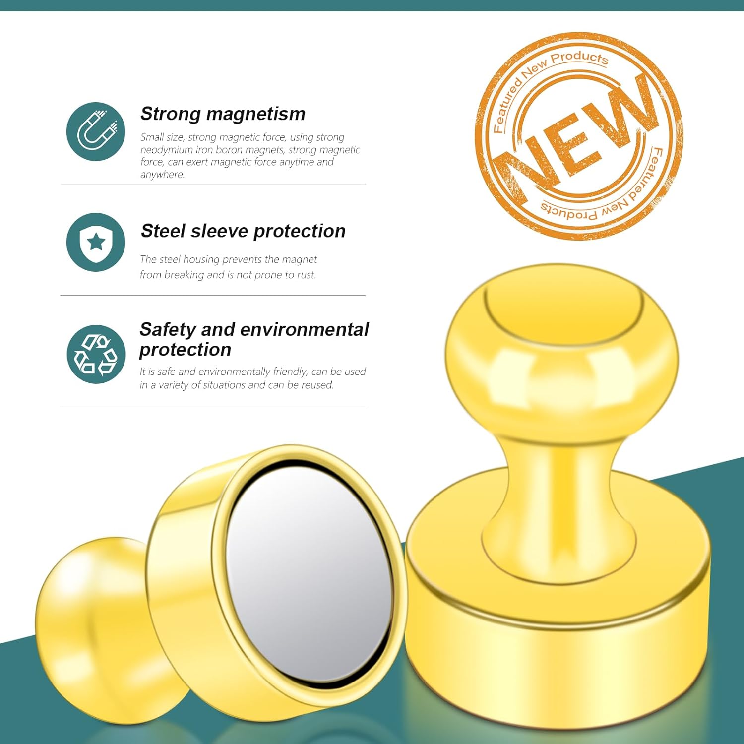 - 【Portable Size】 Each small magnet size is 0.47x0.63x0.2 inches, small in size but strong magnetic force. The shape design of the gold push pin magnets is not only easy to hold but also easy to carry and store