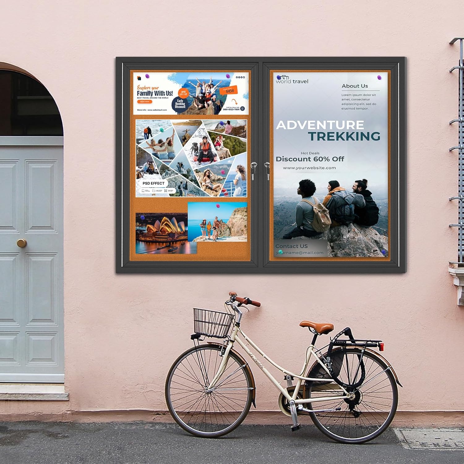 Enclosed Bulletin Board Lockable,Double-Door Weatherproof Outdoor Noticeboard with Locking Door, Wall-Mounted Aluminum Framed Presentation Board, 44x32 Inch (8xA4)