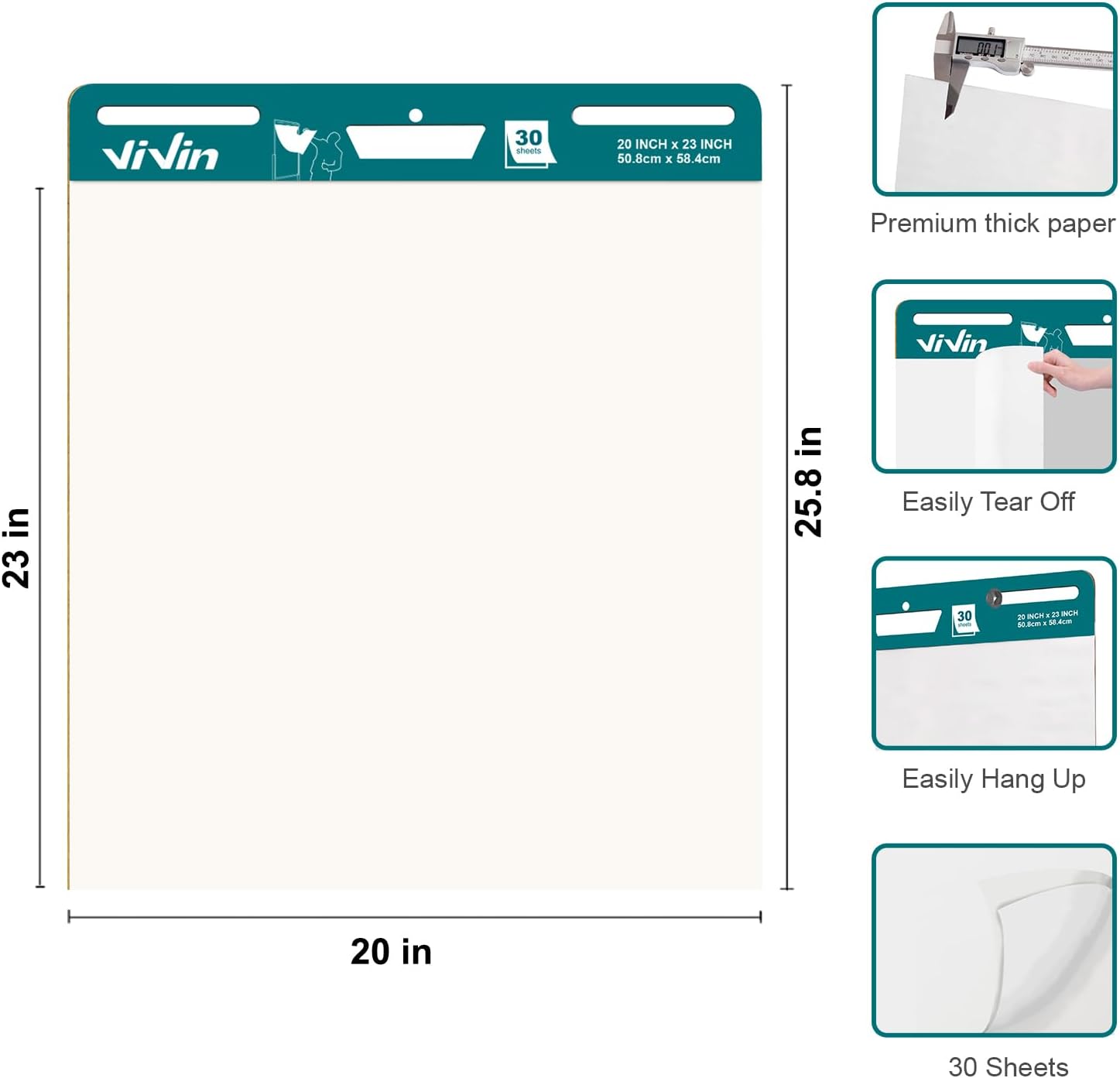 - 【Anchor Chart Paper】 Vivin flip chart paper comes in a large size of 20 x 23 inches, 30 Sheets/Pad, 6 Pads/Pack, providing plenty of space for writing and drawing