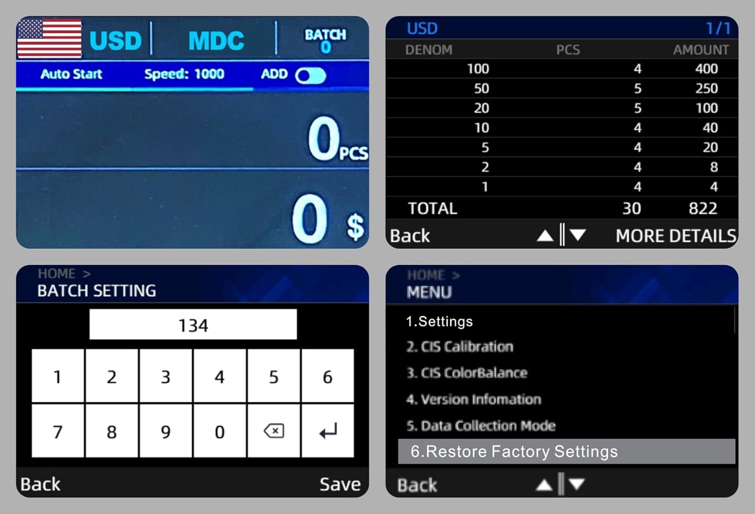 - # Easy-to-use is the key #: Demotio MA-600S combines touch screen and buttons in its intuitive interface, allowing easy operation modes. It streamlines complex counting and supports zero-experience users to operate effortlessly. Plus you'll get a free 4+6 digits large external display to show total value and quantity of the counted bills to your customers at the other end of the machine.