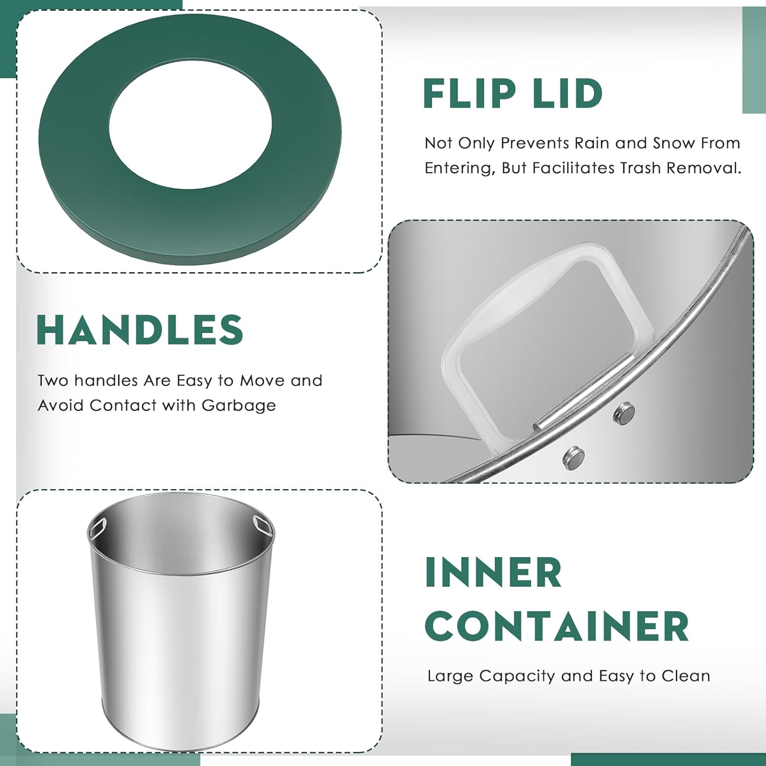 - OVERSIZED TRASH CANS: Open design allows you to dispose of them with ease. We have two sizes to choose from, M: out 30 gallons / in 8 gallons, L: out 52 gallons / in 17 gallons, is the first choice for home and business.