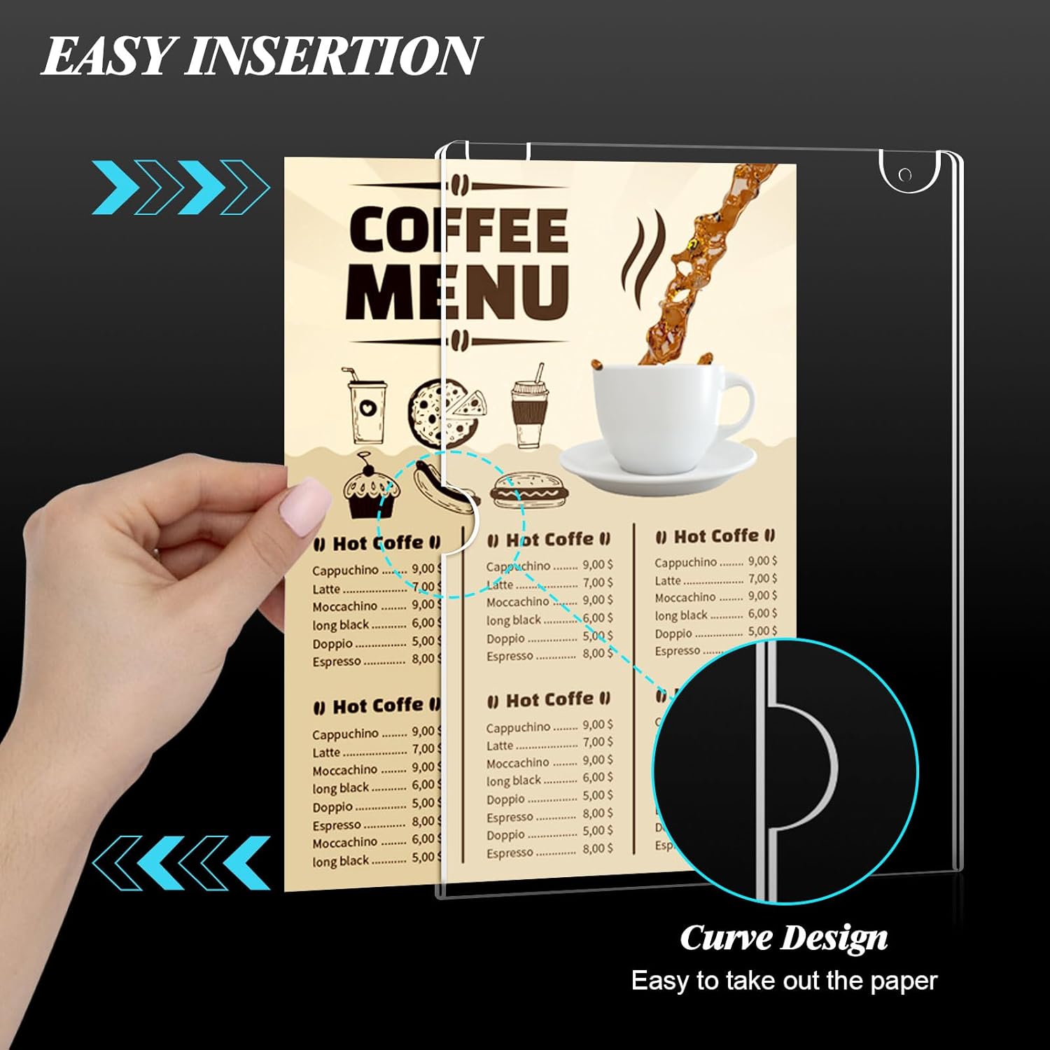 6pack Acrylic Wall Sign Holder with Serews&Tape,8.5 X 11 Wall Mount Clear Plastic Sign Holder,Memo Document Menu Holder for Restaurant, Office, School, Store and Home Use,Support No Drilling