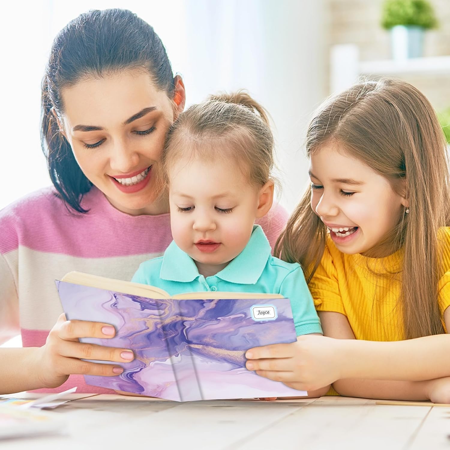 - Easy to use: The stretchable design of these hardcover book covers makes them incredibly easy to put on. No measurements, taping, or cutting required. Simply slide the stretchy book covers onto the book, and it will snugly fit in place. Each protective textbook cover comes with a name sticker, you can stick it on the cover and write your name to distinguish it.