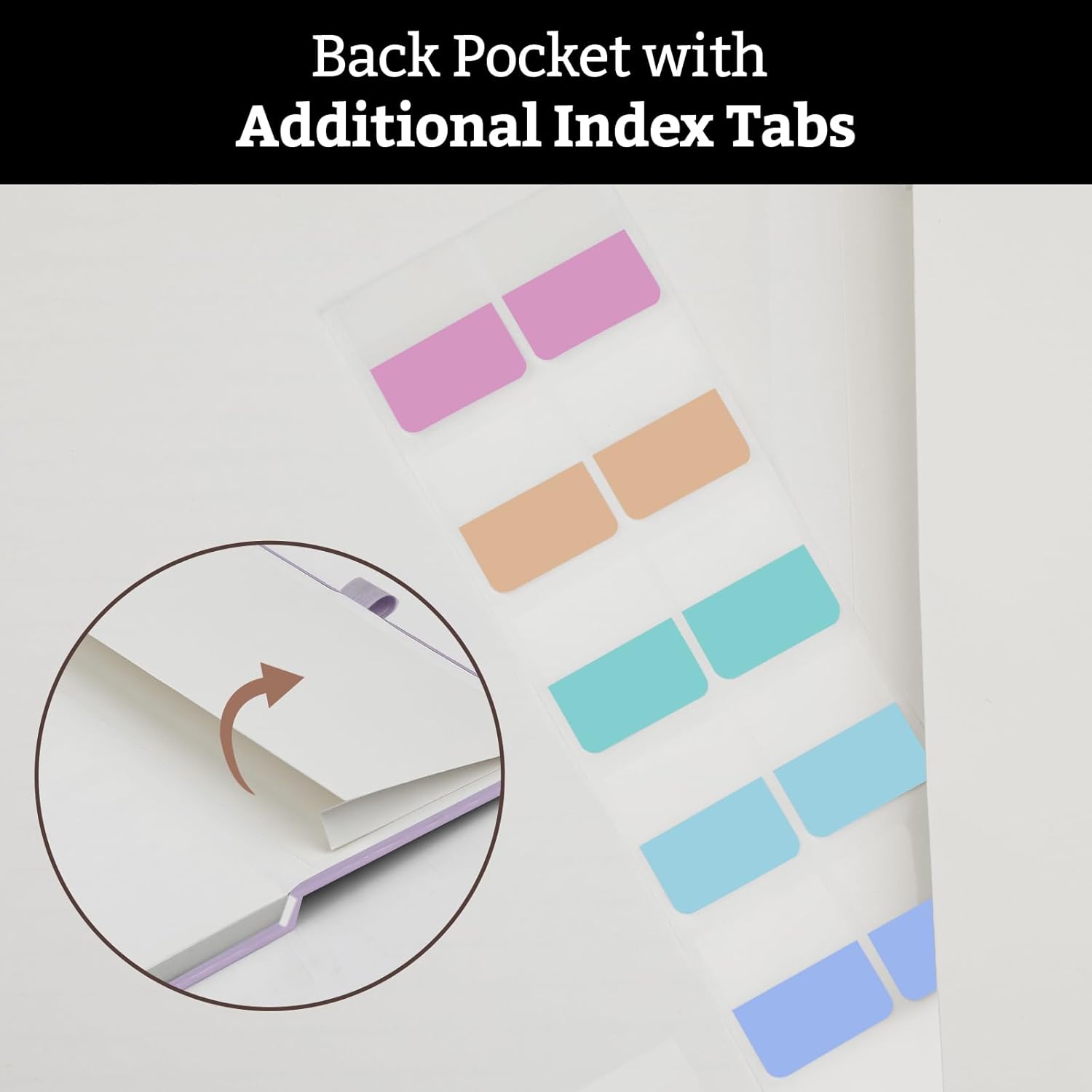 - Bonus Tabs: 1 sheet (12 index tabs) in the pocket—easy to apply/remove without damaging paper.