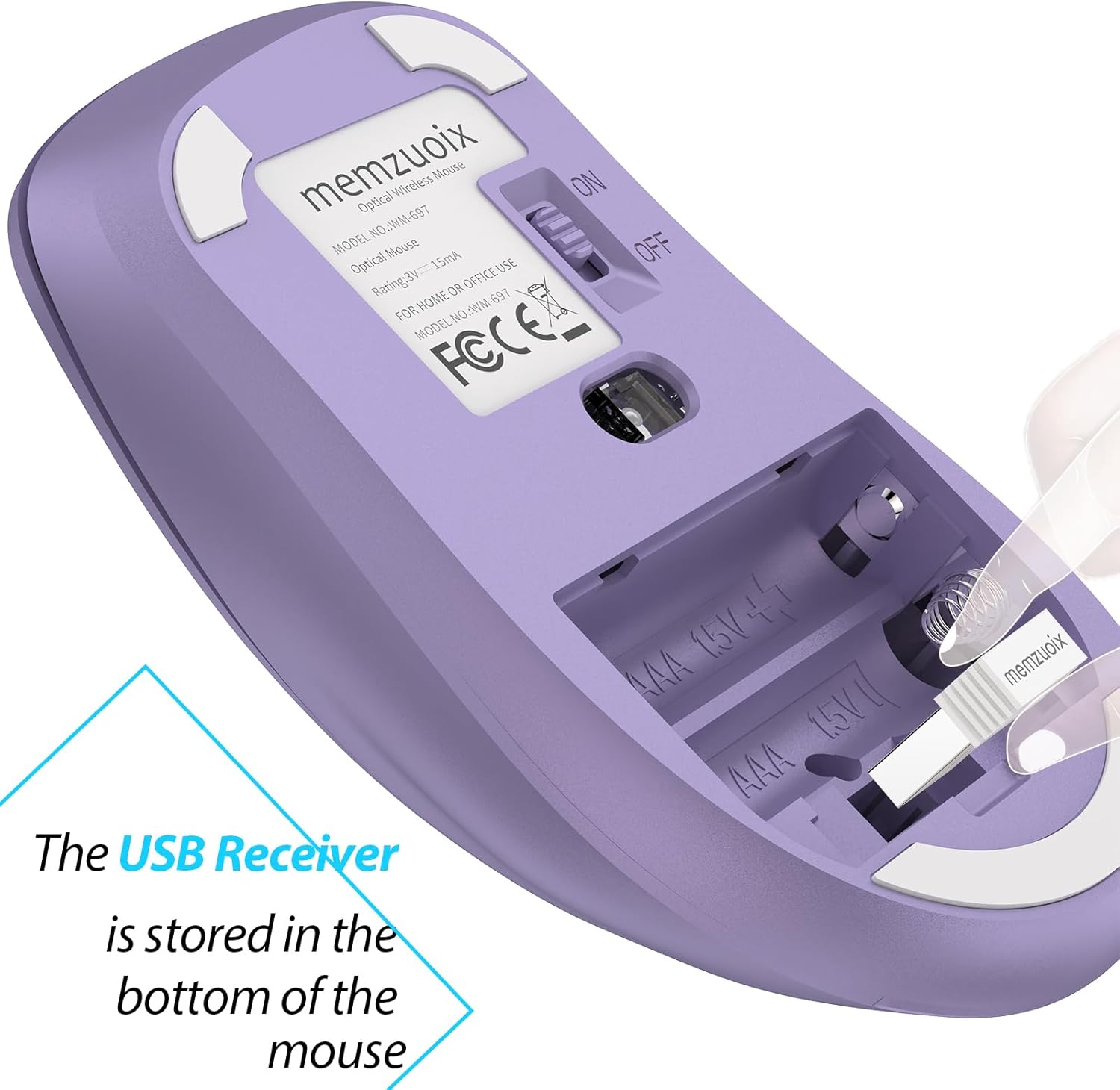 memzuoix 2.4G Wireless Mouse, 1400 DPI Computer Mice with USB Receiver, Portable Wireless USB Mouse Battery Powered Cordless Mice for Laptop, PC, Desktop, 5 Buttons (Lilac)