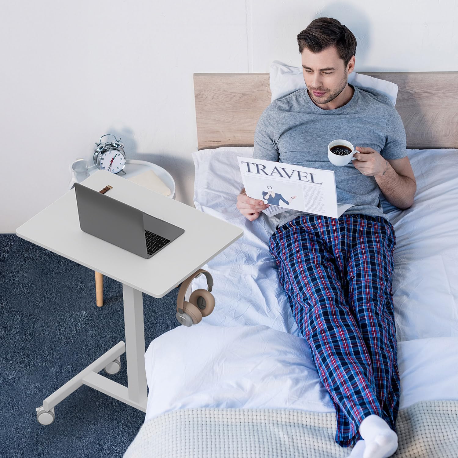 - 【Rolling Desk Adjustable Height】The height of this portable rolling computer desk can stay at any height between 28.5''-42.5'', you can switch between sitting and standing modes at will by the pneumatic adjustment.