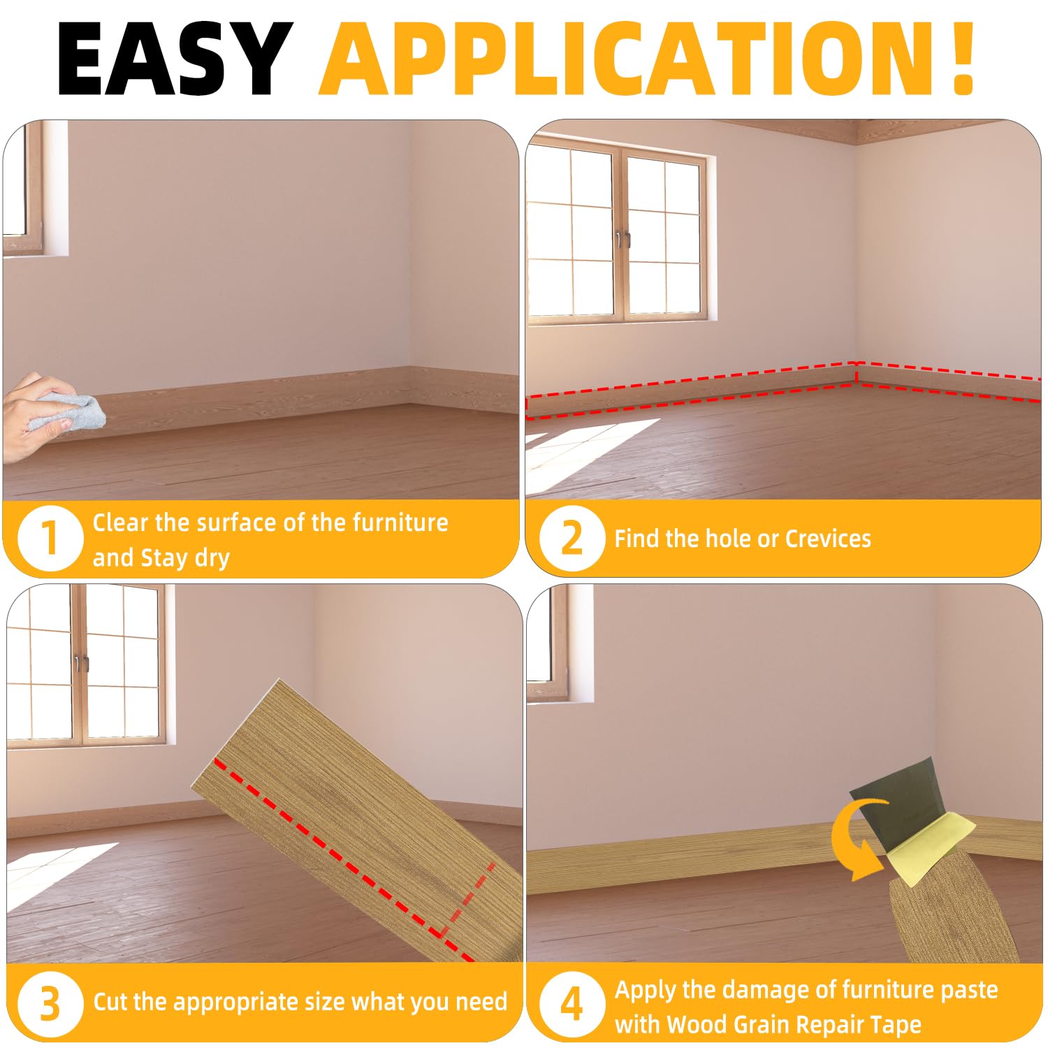 - ¡̡¾HIGH QUALITY¡¿- The Wood Grain Repair Tape is made of high quality Self Adhesive, which is durable and elastic, with a smooth surface and not easy to be dirty.When you repair Tables, Chairs, Baseboards, Doors, Windows, Floors, All Kinds of Furniture Renovation, Wood Grain Repair Tape will be your first choice.