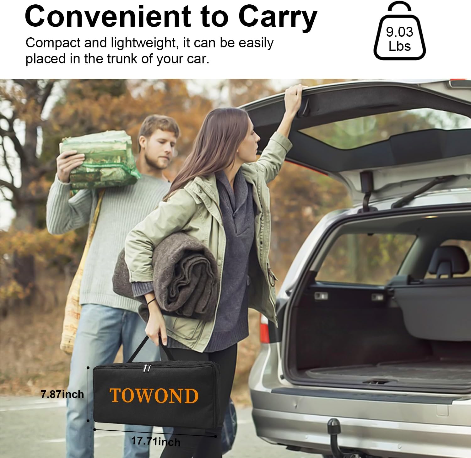 - Portable & Compact: The portable projector screen with stand can be easily packs into a lightweight carrying bag for transport. Fits in car trunks (even sedans!) and stores effortlessly. Perfect for meetings, events, or outdoor gatherings.You only need one hand to lift the 9.03 pounds screen for projector and carry it anywhere you want to go to start your movie journey.