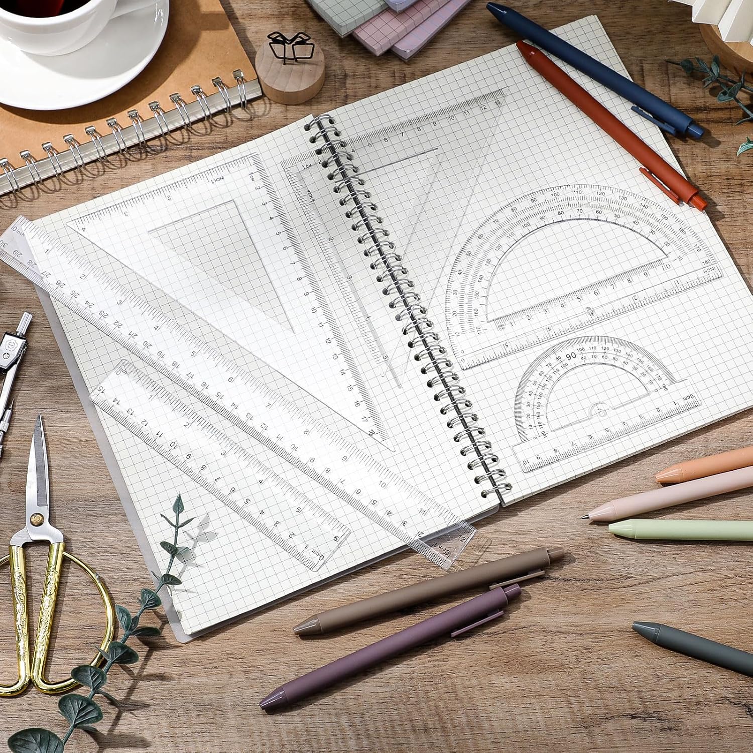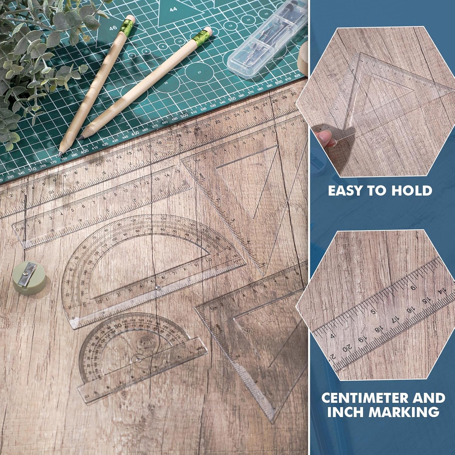 Tenare 6 Pcs Plastic Ruler Math Set Includes 12 Inch 6 Inch Straight Protractor Triangle Geometry Transparent Math Ruler Measuring Tools for School Office Home(Clear)