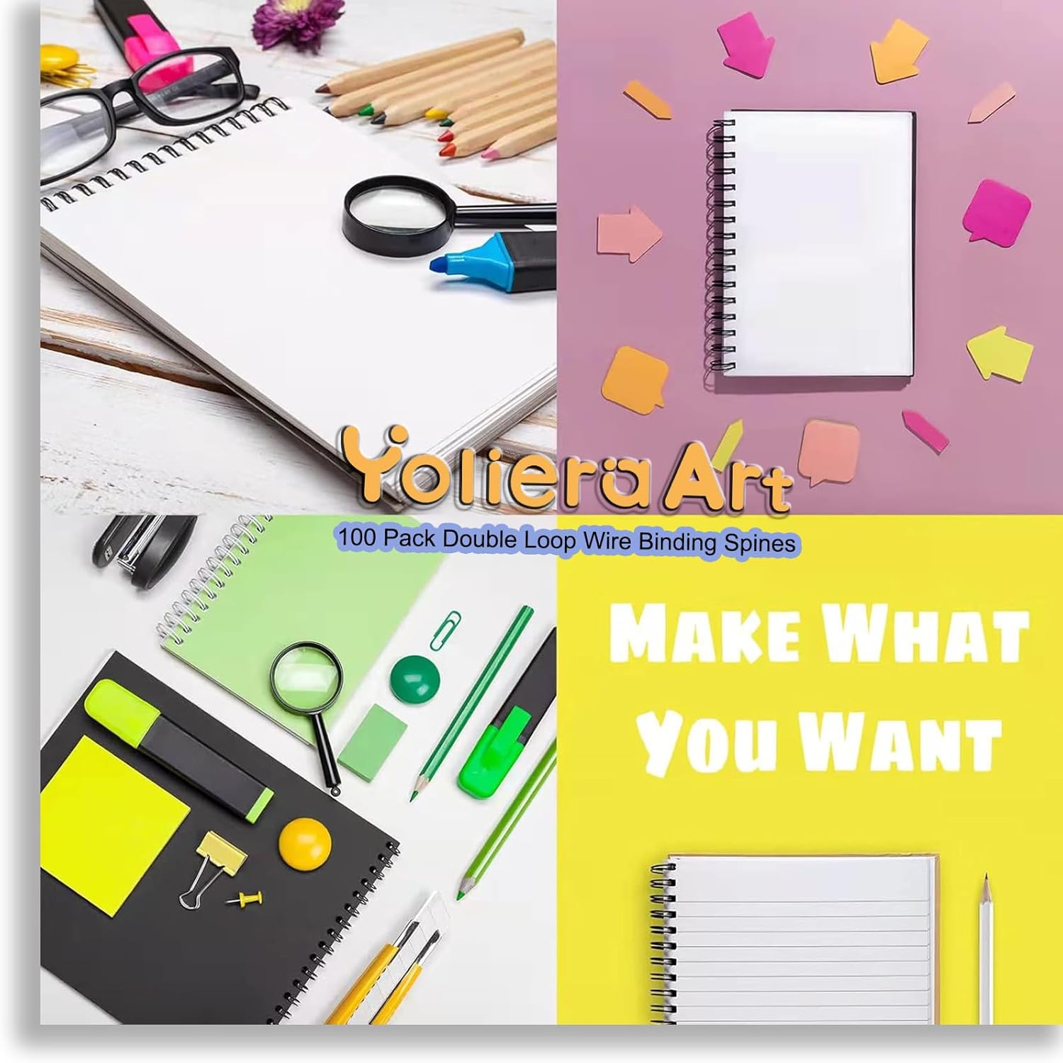 • High-Capacity Binding for Professional Use: Each YolieraArt double loop wire binding spine securely holds up to 120 sheets of standard A4 paper, ideal for thick reports, calendars, or notebooks. The metal inner wire structure ensures consistent tension to keep pages firmly aligned without shifting. With a 9/16 inches diameter and 0.8mm thickness, these spines balance flexibility and strength, supporting smooth 360-degree page rotation.