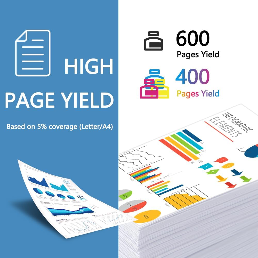 - High Page Yield: Print more with XL --- Up to 600 pages per 260xl black ink cartridge, 400 pages per 261xl color cartridge (Cyan, Magenta, Yellow) (5% coverage), It is a high capacity of canon ink 260 and 261