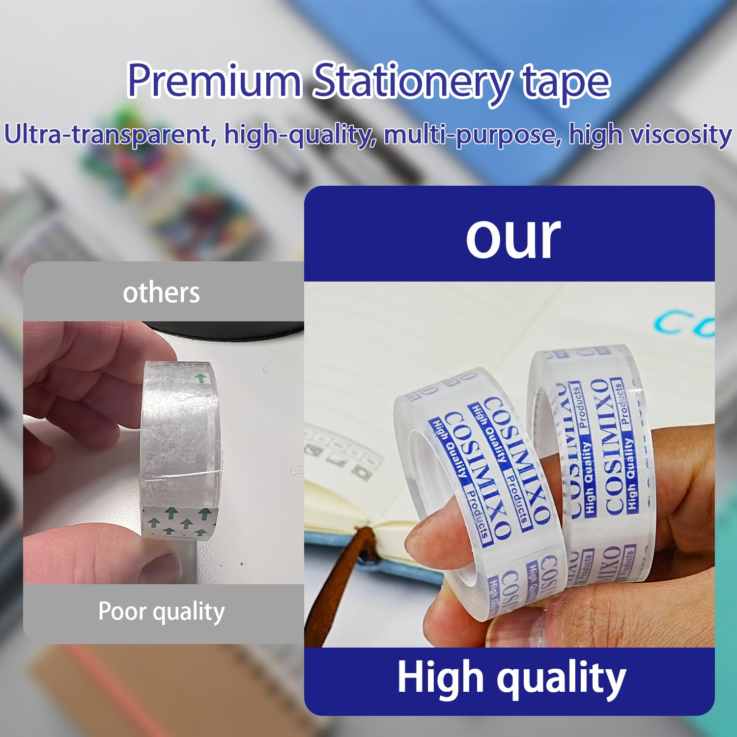- TRANSPARENT DESIGN: Our transparent tape is perfect for all your office and school needs. With its complete transparency, Crystal clear adhesive tape ensures seamless, invisible application on various surfaces.